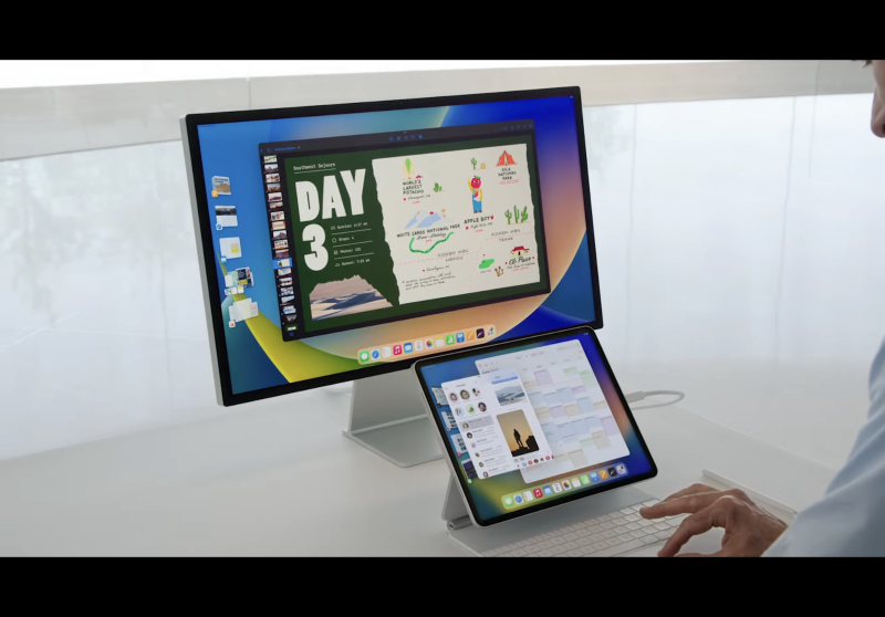 さらに、外部ディスプレイへの出力もサポートされ、それぞれの画面にステージマネージャでアプリを配置できるようになります。