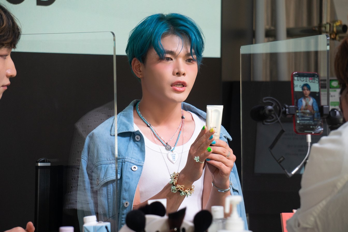 さらに、普段どこでコスメを買うかの話に。実店舗とオンラインの両方を活用している4人だが、口を揃えてビューティ?スクエアは入りやすくて良いと共感。「昔、化粧品のカウンターで自分用の買い物をしている時に『プレゼントですか?』って聞かれて、ちょっと切なかったんだよね。ビューティ?スクエアでは最初から自分用だって分かってくれて、ヒ?ューティーコンサルタントの皆さんも気さくで、話しやすい」(フゥジ)。「私も美容部員時代に男性にプレゼント用か聞いたことはある気がする...ちょっと反省。自分が主役で買い物できるって大事だよね。ビューティ?スクエアはブランド横断で紹介してくれるから、思いがけない商品に出合えるのが楽しい」(あやんぬ)。「メンズが最初にコスメを買うのって、ドラッグストアですら緊張するって人もいると思うけど、ビューティ?スクエアはそんな人におすすめしたいね。ビューティコンサルタントの制服もオーバーオールとかデニムでカジュアルだから、良い意味で敷居が低いというか」(万太郎)。
