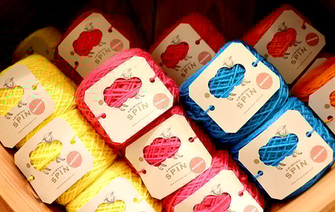 それもそのはず、同店では他では見たことのないような毛糸もいっぱい。目の覚めるようなポップなピンクやイエロー、グリーンといった単色のものの他に、複数の色が絶妙にミックスしたもの、また、ウールやコットンだけでなく、和紙だったりなど、素材も豊富で、オンラインでも販売されていて人気だそうだ。
