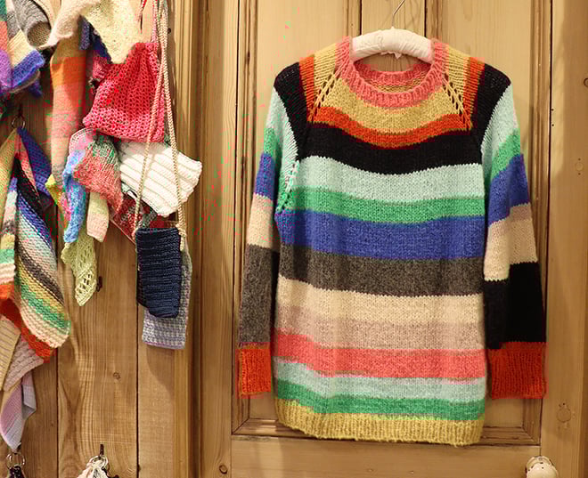 JWアンダーソンとユニクロのコラボ?を思い出した一見難しそうなカラフルなボーダーニット。「ぐるぐる編むだけ」で簡単なのだとか。