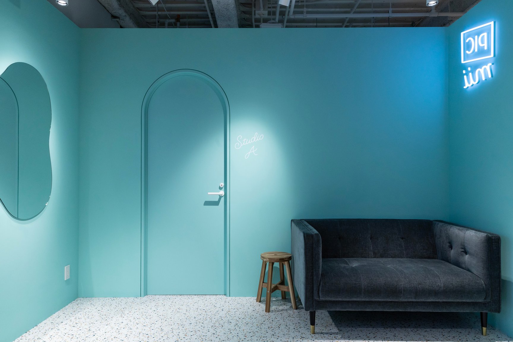 キタムラが手掛けるピックミーは、内装デザインが異なるプライベートスタジオを設置(新宿店は3タイプ、渋谷店は2タイプ)。各部屋には撮影に必要な機材や小道具が揃っており、手ぶらで来店可能となっている。写真専門店ならではのクオリティの高い仕上がりが特徴で、通常仕上がり(モノクロ)は複数パターンを用意。近接から全身まで自由な撮影が楽しめる。このほか、有償オプションとして、「カラー撮影」「特殊フィルターレンタル」などのメニューも展開している。基本メニューの料金は15分撮り放題で、税込3800円(モノクロ撮影、2人までの場合)。