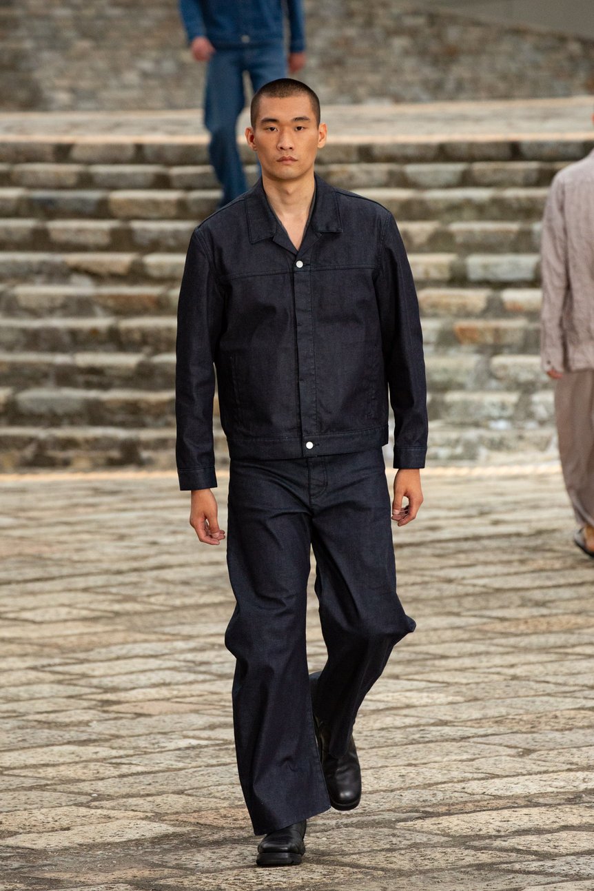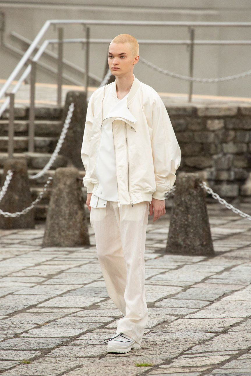 合同ランウェイショーでは、2ブランド合計40体のルックを発表した。アタッチメントからは、2000年代のファッションから着想を得たシュリンク加工が施されたシャツや、内側に湾曲したシルエットが特徴的なパンツなどを披露。ヴェインからは、ジップのディテールによって立体的なシルエットを描いたレザーブルゾンや、ブランドのシグネチャーであるオーバーサイズの服を解体再構築した「リサイズ」シリーズのカットソーやパンツなどが登場した。