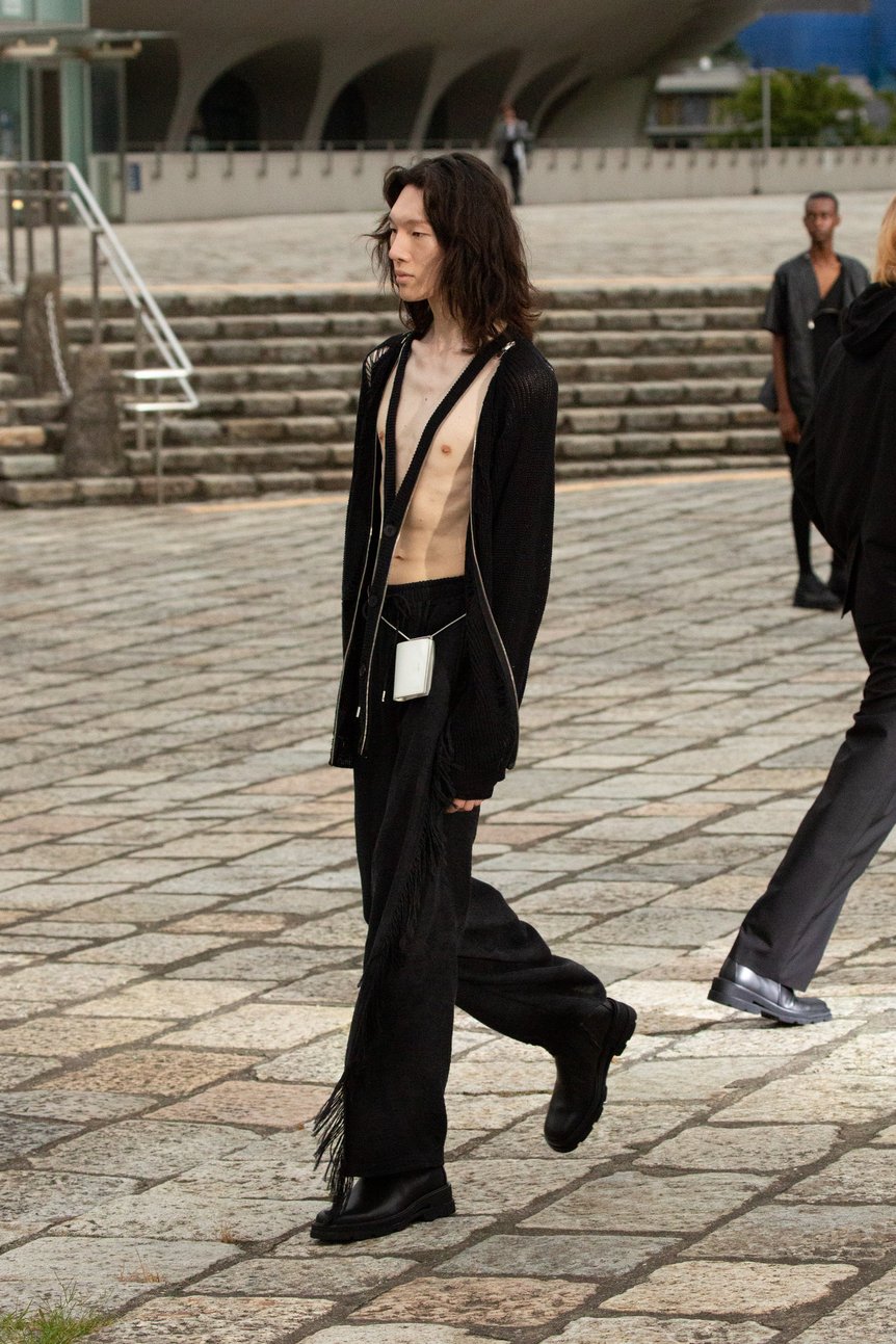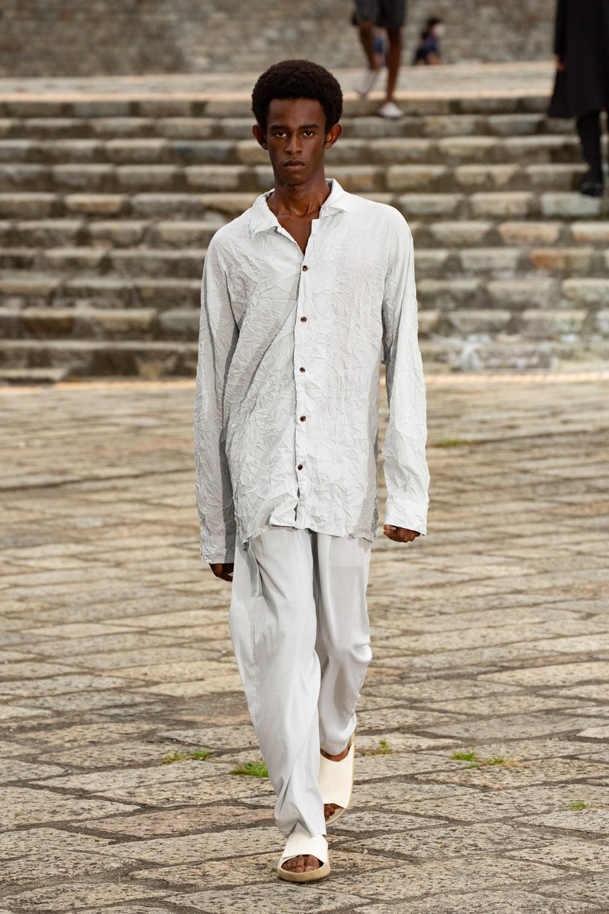 両ブランド共に榎本がデザイナーを務めるが、合同でのランウェイショーは初開催となる。会場は、代々木公園第2体育館のエントランス。合同のランウェイショー開催に至った経緯について榎本は「異なるコンセプト持った2つのブランドを交錯させることでお互いのブランドがより豊かに見えるのではと考えた」と説明。ルック自体はそれぞれのブランドをミックスすることなくスタイリングしたが、複数人のモデルが、同時にランウェイ上で不規則に歩く事で2ブランドの交錯を表現したという。ショーの音楽は、老舗レーベル「Smalltown Supersound」に所属するアーティストYoshinori Hayashiが担当。異なるテイストの音源をミックスして音楽制作を行う同氏の音楽もまた、それぞれの特徴を体現しながらもランウェイの時間と空間を共有した今回のショーに花を添えていた。