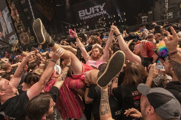 BURY TOMORROWのモッシュピットでリフトされる観客。