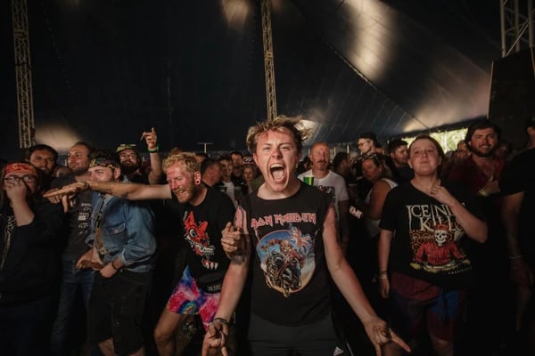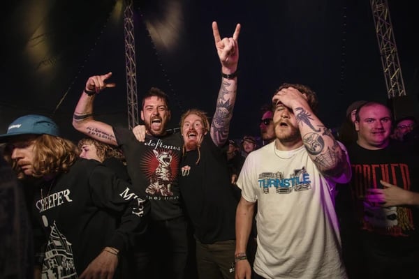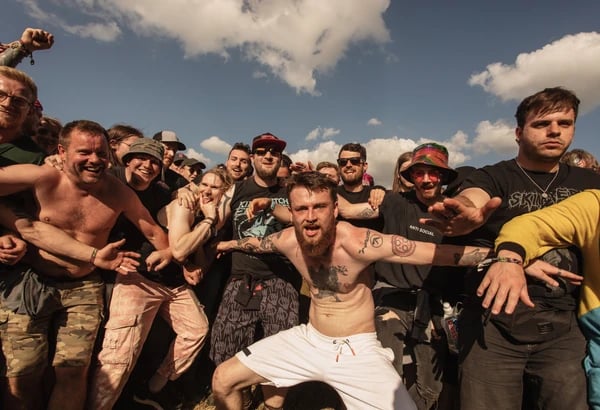 SKINDREDのモッシュピットに備える観客たち。