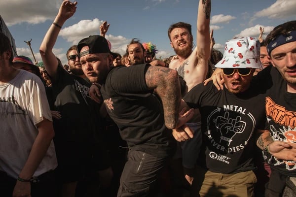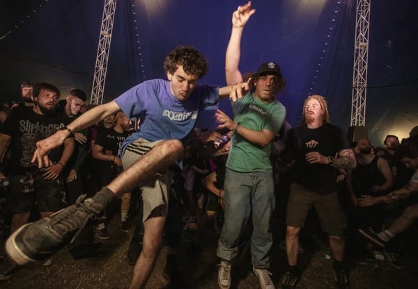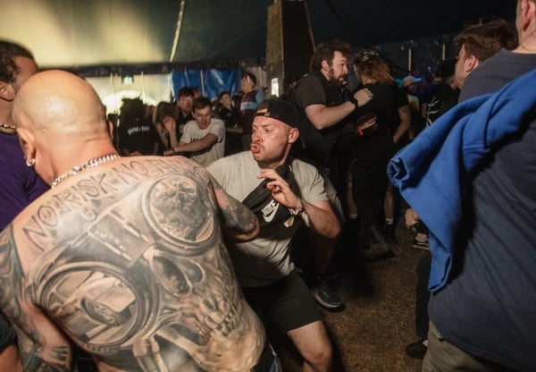 突然キスしたり、踊りたくなったり、ジェットコースターで叫びたくなるのと同じように、密集した状態で無秩序に体をぶつけあうモッシュピットは不思議とやらずにはいられない、衝動的な現象だ。ヘヴィなギターリフや鳴り響くドラムには、私たちをバンパー?カーやガス粒子のように他人に突進させ、激突させる何かがある。地下鉄やスーパーなど、他の場所でモッシュピットが起これば、まさに大惨事だ。しかし、メタルライブやダウンロード?フェスティバルでは、まったくの別物になる。