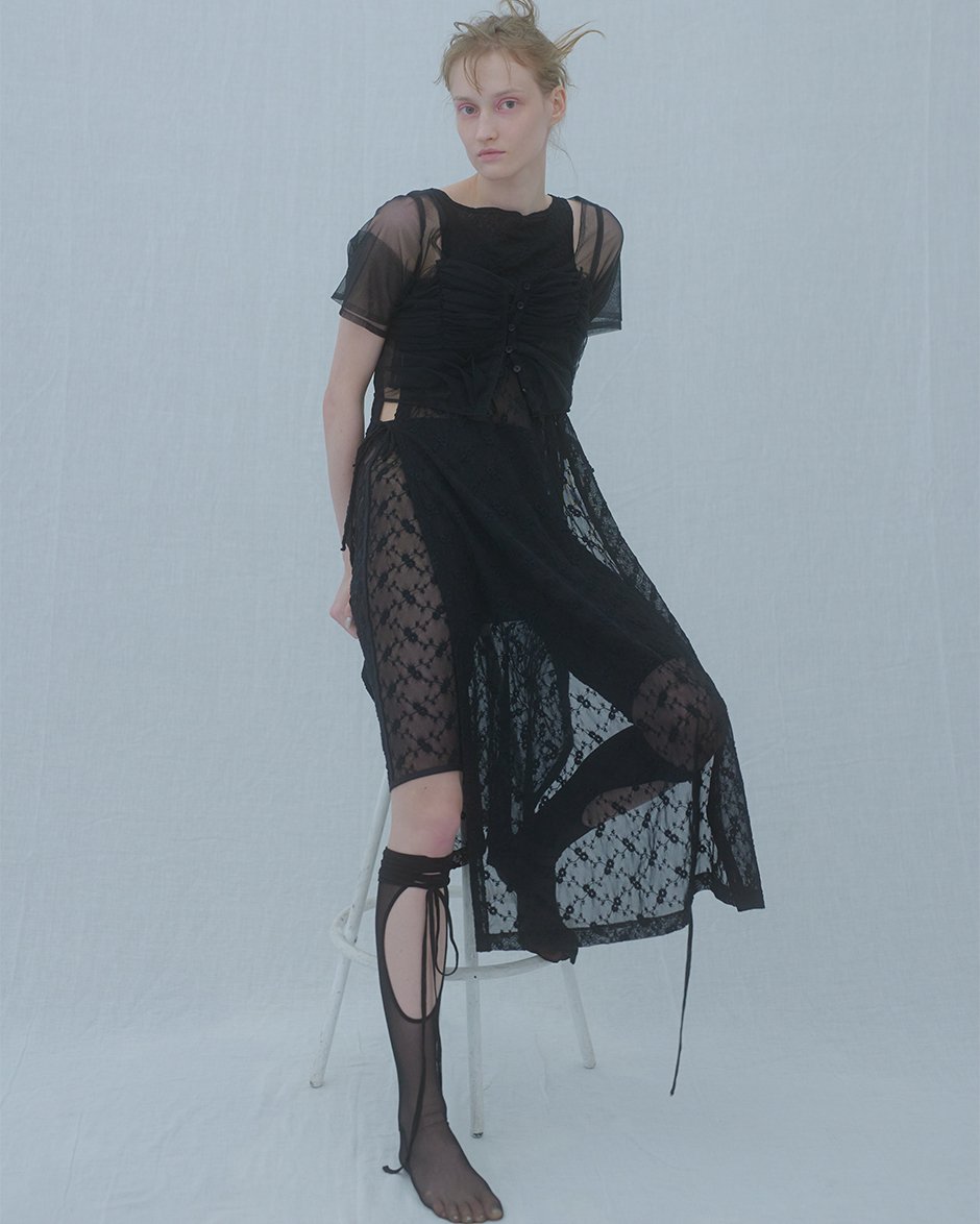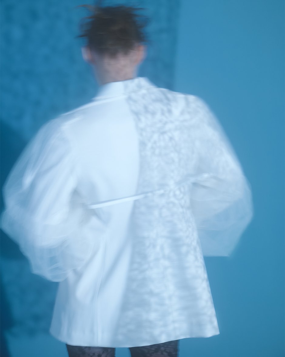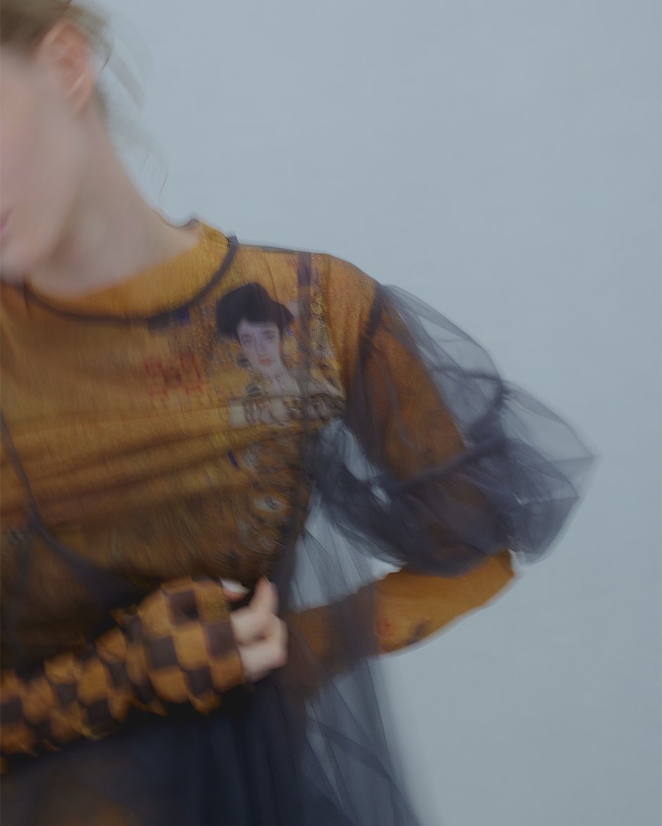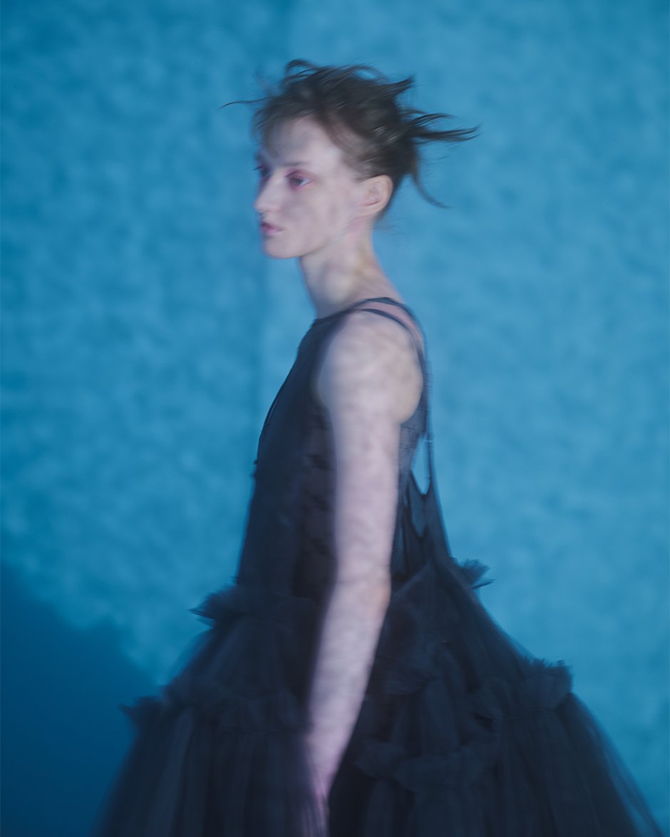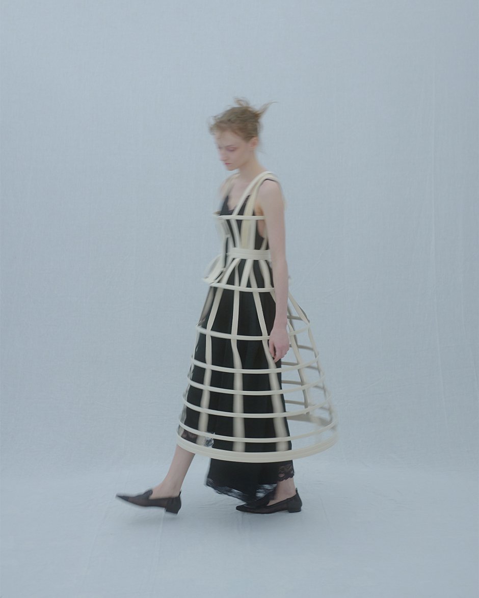 淡い色調と穏やかな陰影、細やかなテクニックは、現実と幻想の中にある物語の服を創出。