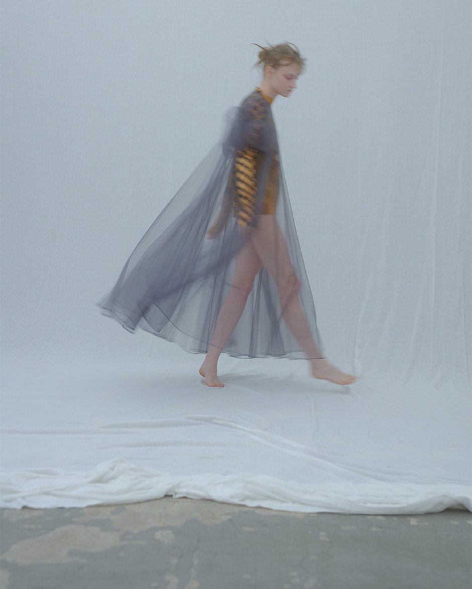 今コレクションは、ダンスによる動きと残像から得たインスピレーションを元に制作。