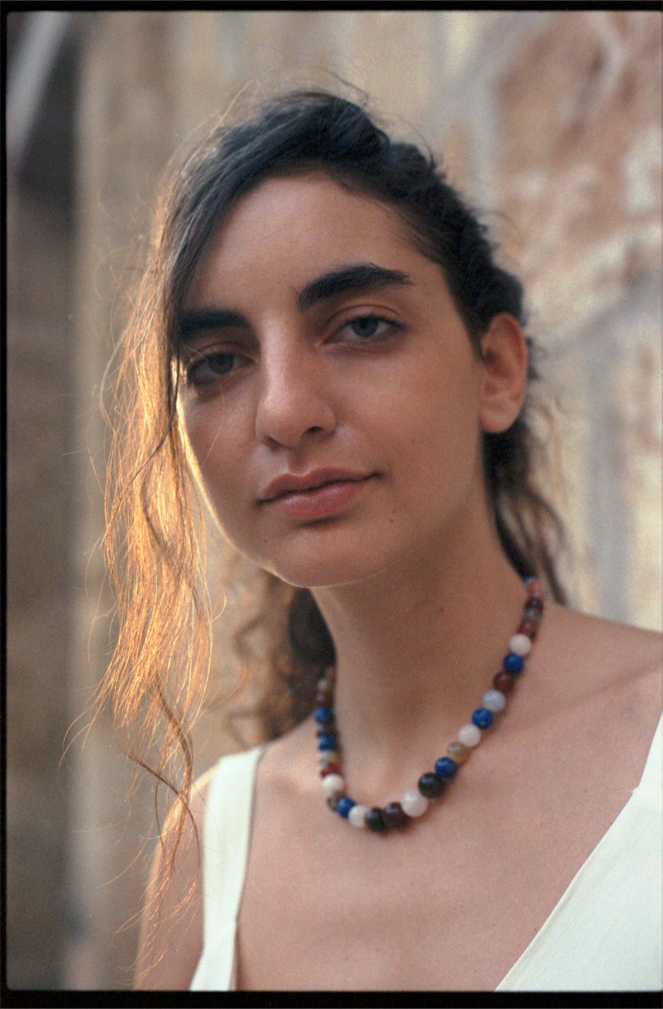 dress by CABINA RIZZO, necklace by ARTEFACT, vintage trousers and shoes stylist’s own