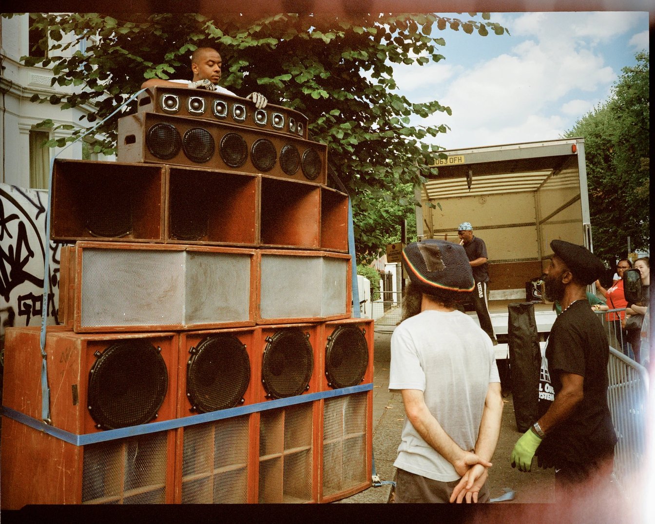 ノッティングヒル?カーニバルでサウンドシステムをセッティング中。PHOTO: EDDIE OTCHERE