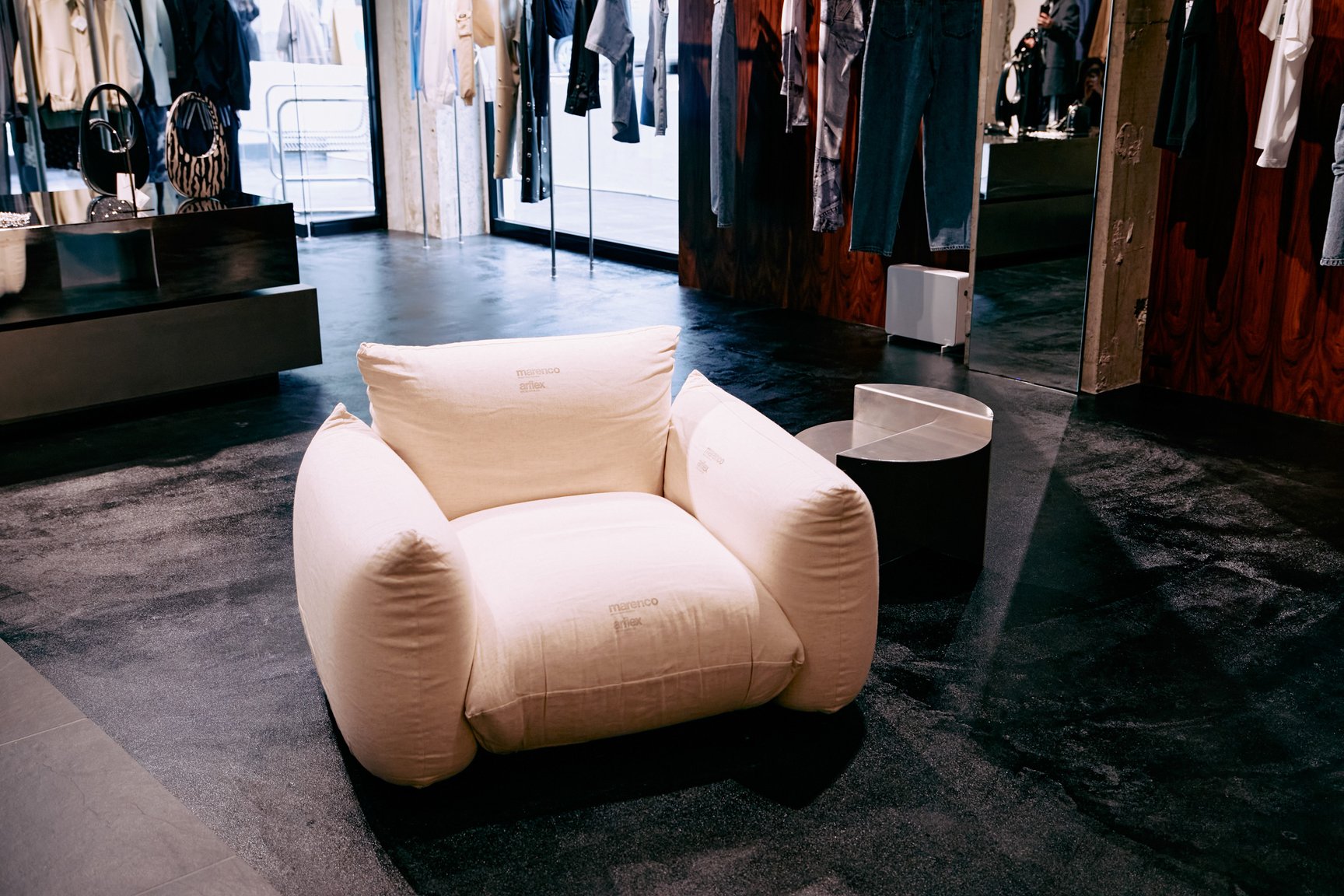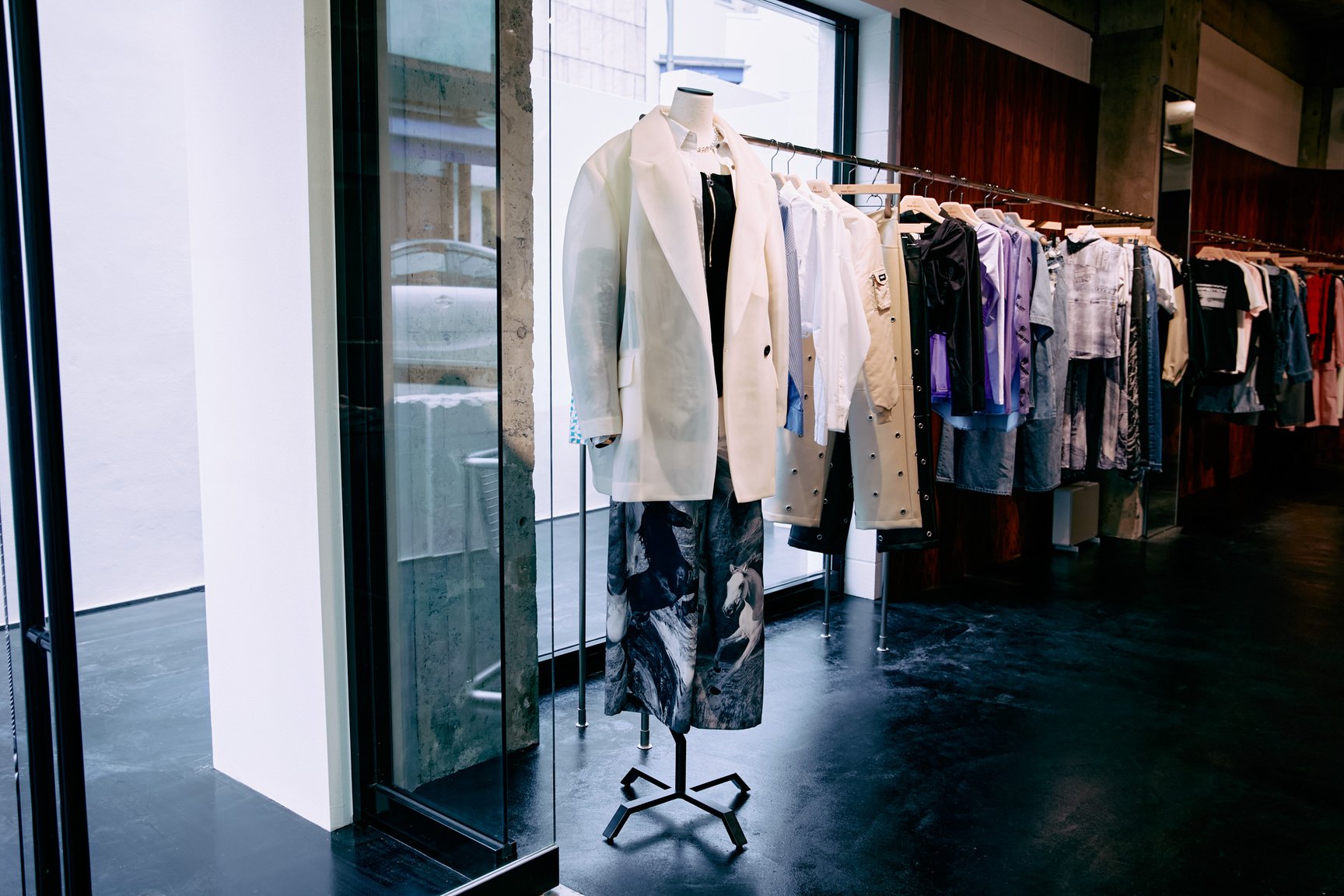 旗艦店は地上1、2階の2フロア構成で、店舗面積は約240平方メートル。オリジナルに加えて、「クレージュ(Courrèges)」や「コペルニ(COPERNI)」「ワイ?プロジェクト(Y/PROJECT)」「キムヘキム(KIMH?KIM)」「ELLISS」などのブランドも販売する。メゾンスペシャルのセレクト比率は5%ほどだが、プランク プロジェクトでは2割と比率を高める。