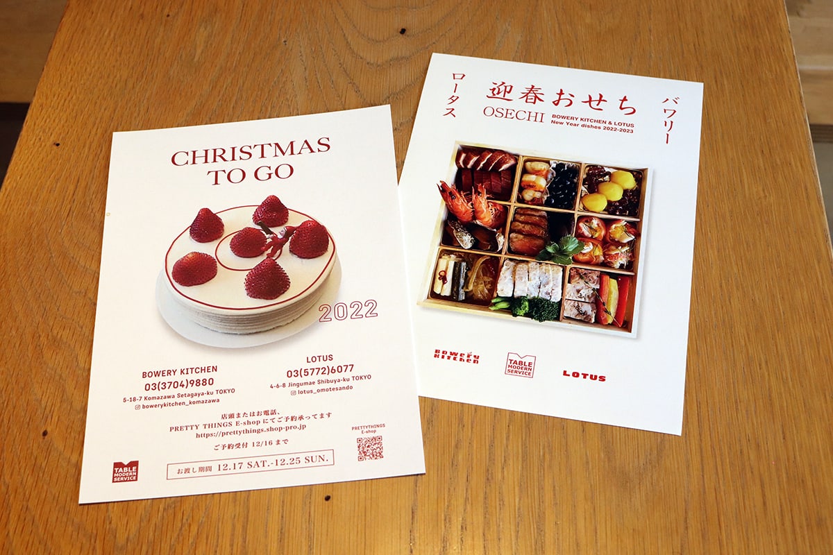 それぞれ、クリスマスケーキは2022年12月16日(金)まで、おせちは29日(木)まで予約を受け付けているのでお見逃しなく。価格や引き取りの詳細は店頭、または電話にて。ケーキは「PRETTY THINGS E-SHOP」でも予約可能だ。