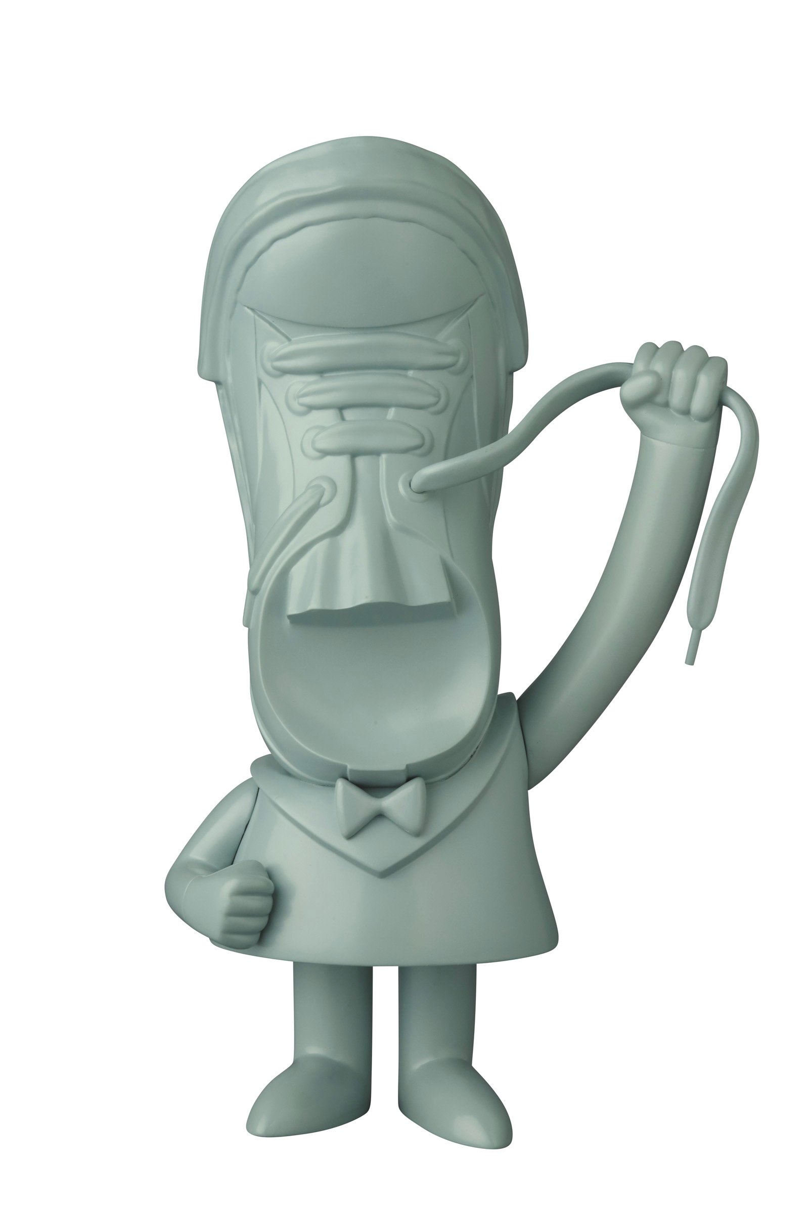 VCDは、キャラクターの魅?を忠実に再現することをコンセプトにしたソフトビニール製フィギュア。靴紐結べな君の全長は22.5cmで、?く飾って遊んでもらえるようにモノトーンとグレーのカラーリングを採用した。デジタル3Dキャドではなく、ソフビと同様に原型師の手作業による原型成形を用いることで、懐かしさと優しさを感じてもらえるようデザインしたという。なお、靴紐結べな君は「『結べなランド』という遊園地を作る!」との夢を掲げて日々邁進している。