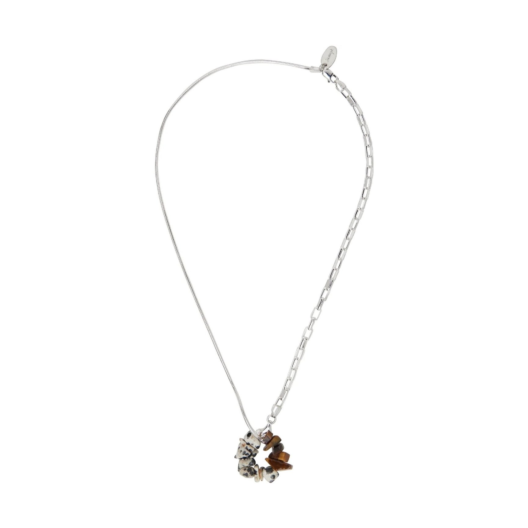 「サンタンジェロ(SANTANGELO)」のネックレスは、タイガーアイを採用した一品。決断力や洞察力を高めるとして信じられ、新しいビジネスや環境に挑戦する、そんな決意の時にぴったりなパワーストーンです。対になっているダルメシアンジャスパーは、ネガティブな思考を向上させると言われています。