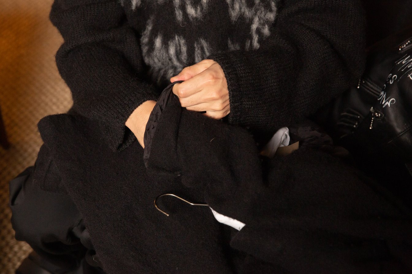 F:東京で開催されたプリュスのショーでも特に目立ったルックでした。コレクションでは鮮やかなカラーが提案されていましたが、こちらは山口さんならではのブラック。