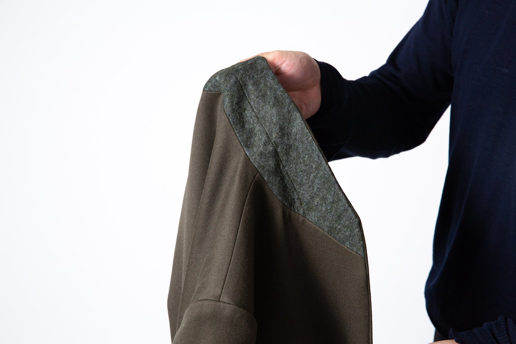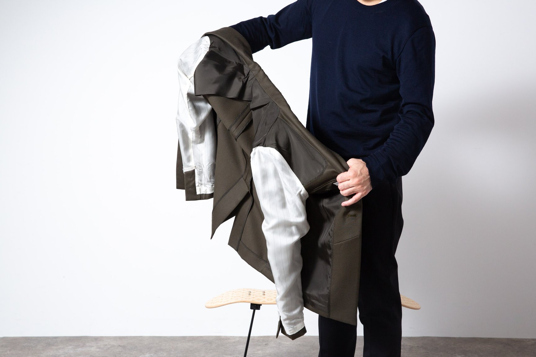 光山:ジャケットってやっぱり裏が影の主役ですよね。裏がしっかり作られていると、安心感があります。裏返して気づいたんですけど薄くパッドが入っているんですね。軽い着心地だから気がつきませんでした。