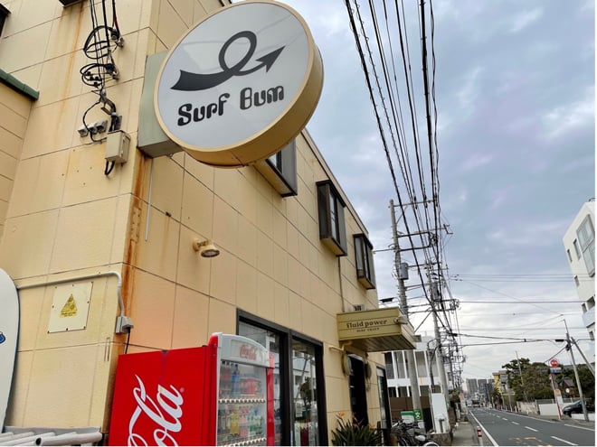 ▲茅ヶ崎には今でもサーフショップが軒を連ねる
