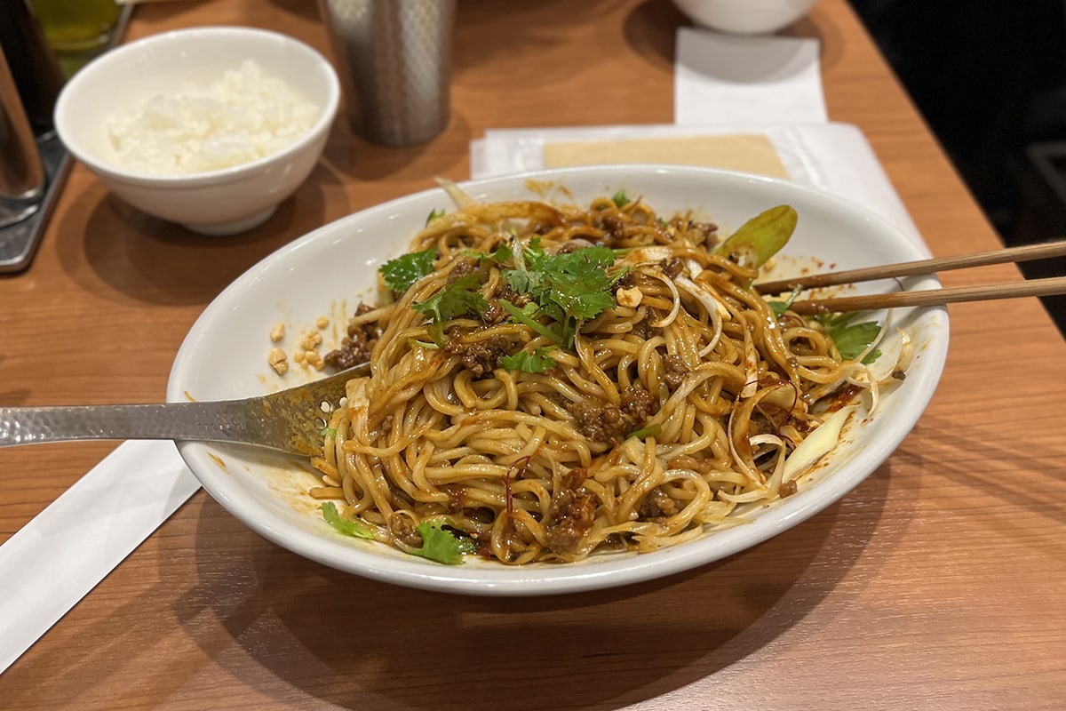 食べたもの:汁なし坦々麺(1,000円)、半ライス(100円)