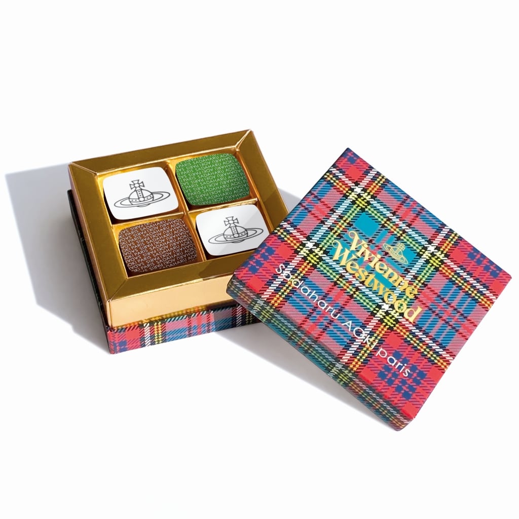 スペシャルエディションのチョコレートが日本限定で登場。ヴィヴィアン?ウエストウッドを象徴する鮮やかなカラーコンビネーションのタータンチェックに、両者のロゴをプリントした特別なボックスは、ヴィヴィアンファンにはたまらないヴィジュアル。