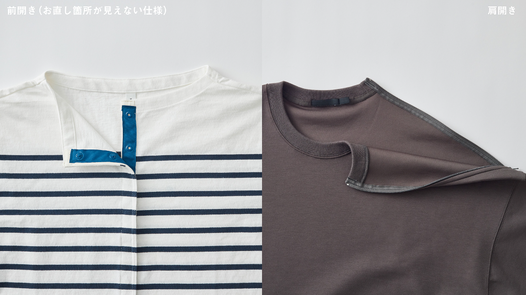 「キヤスク」のお直しは、一般的なお直し屋さんが行うような裾上げやほつれ直しといったものではなく、障がいや病気のある方の身体状態に合わせて、洋服をお直しするもの。「Tシャツやカットソーを前開きにする」、「ボタン留めをマジックテープ留めに変える」など、いくつか基本メニューがあり、お客様に希望するメニューを選んでいただきます。そしてオンライン上で、キャスト(外部協力のお直しスタッフ)と打ち合わせを行ってもらい、洋服をキャストにお送りいただきます。キャストがお直しを行ったら、お客様の元へお送りする、という流れです。