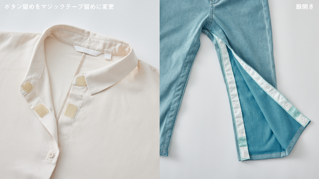 ひとことで言いますと、「障がいや病気を抱えている方が既製服を着やすくするお直しを、気軽に、着やすくご依頼いただけるオンラインサービス」です。障がいや病気を抱えている方は、どうしても“着やすいかどうか”という視点で服を選ばれていることが多いのですが、そうではなく、“自分の好み”で自由に選んでほしい。自分の好みの服を着るという選択肢がとても少ないというお悩みをお持ちなので、それを解決するサービスです。
