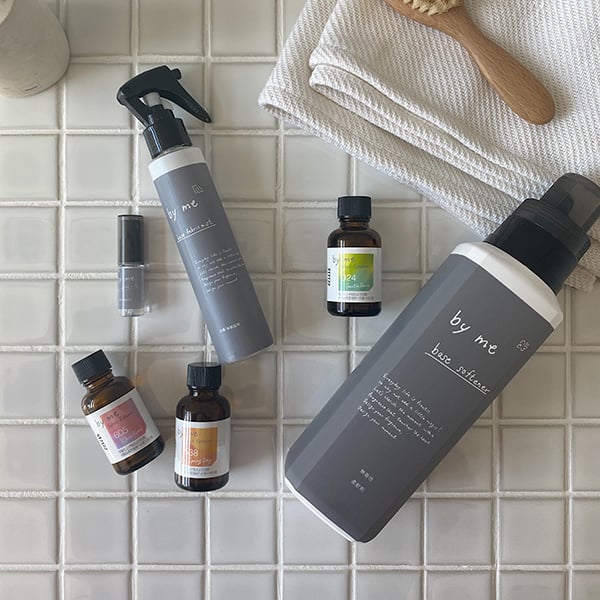 今回ご紹介するのは、自分に合った香りを自由にカスタマイズできる新ブランド「by me(バイミー)」。ブランド専用のサイトから購入することができます。柔軟剤?衣類ミストなどの無香性のベースに、自分の好きなエッセンスを加えることで、香りをカスタマイズできますよ。