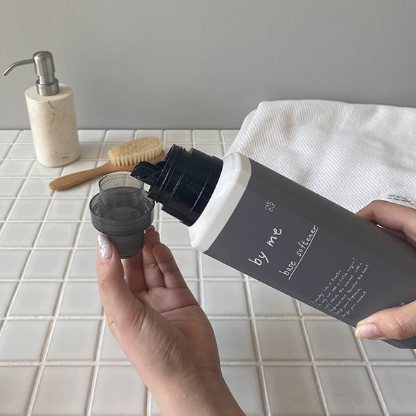 柔軟剤を使いたいときは、洗濯機の柔軟剤投入口にベースソフナーを入れ、その後にお好きなエッセンスをプラス。あとは、いつも通りお洗濯をスタートさせましょう。