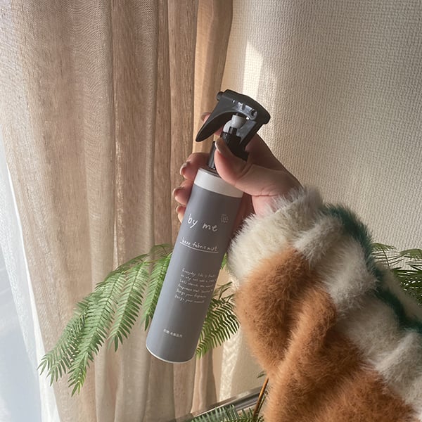 ファブリックミストはカーテンや寝具などにはもちろん、今の時期は洗うことの難しいコートやニット類にシュッとしても◎