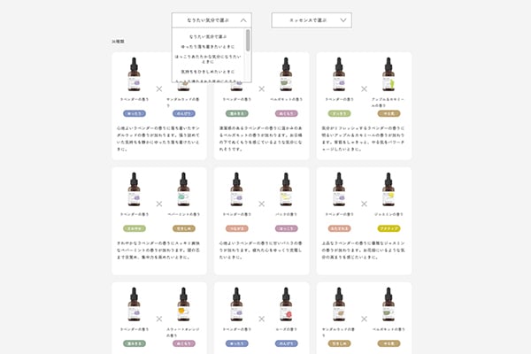 なりたい気分で絞り込んだり、好きなエッセンスで選んだり......気になる香りを見つけてみてくださいね!