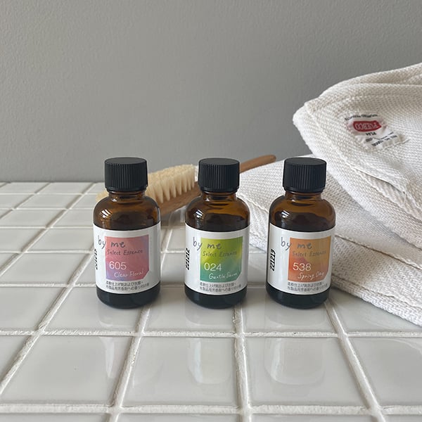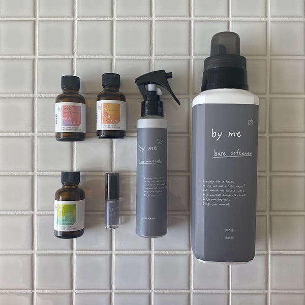 「by me」の特徴は、柔軟剤?衣類ミストなどの“香りのないベース”に、好みの香りの“エッセンス”をブレンドすることで、自分にあった香りを自由にカスタマイズできる点。