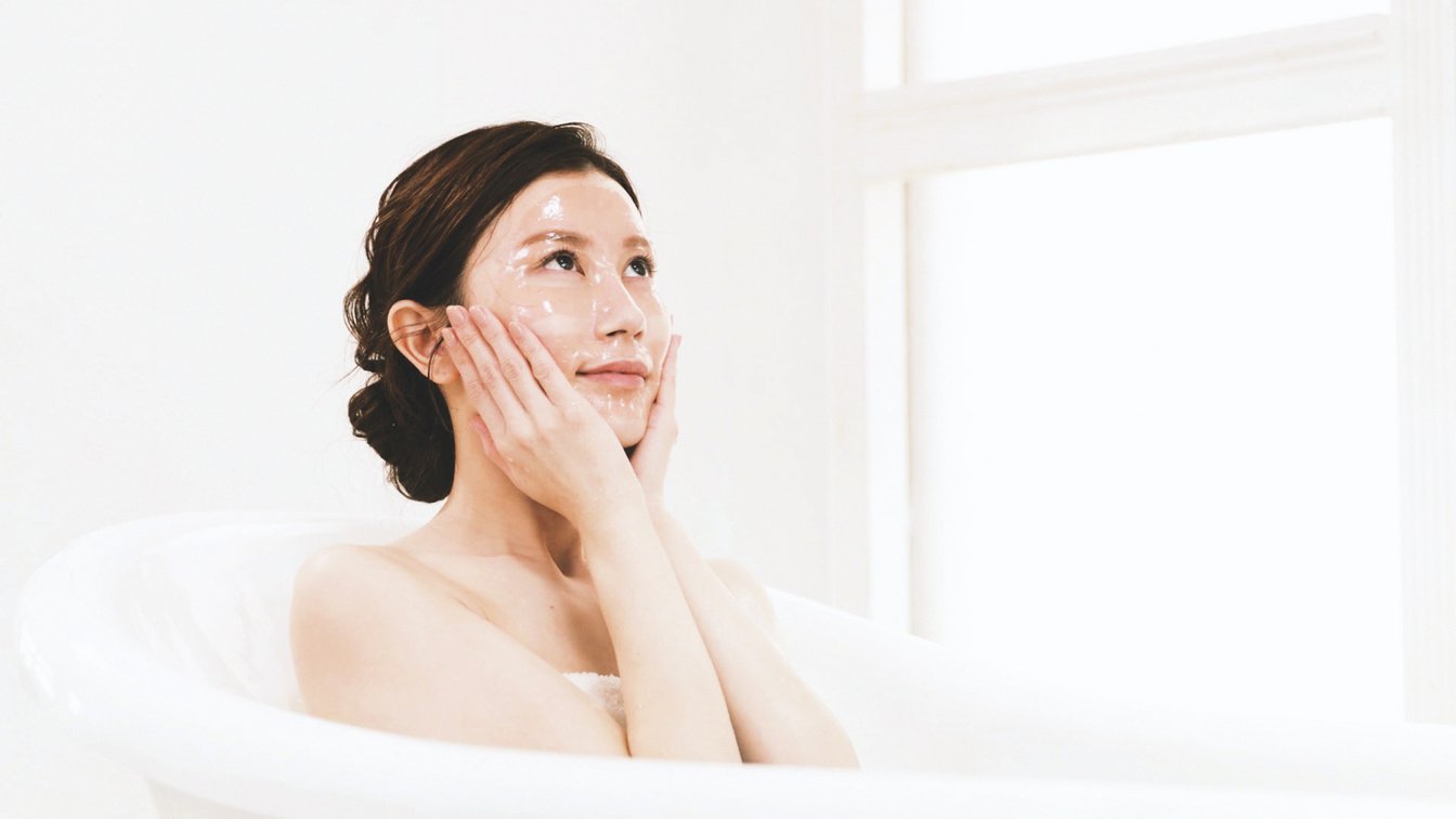 透明な見た目も、そのコンセプトもオンリーワンな製品だが、使い方も実に独創的。お風呂の中でシートを顔にのせ、肌に馴染ませるようにマッサージをしながら溶かしていくのだという。