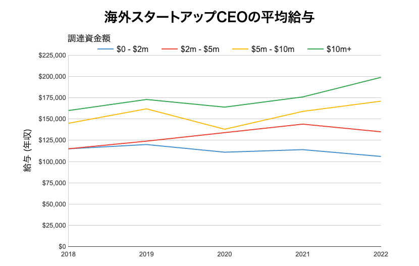 調達額別スタートアップCEO給与推移