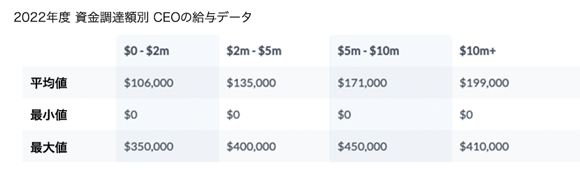 2022年度 資金調達額別 CEOの給与データ