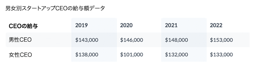 2022年のスタートアップCEOの平均給与は、2021年の水準から2.7%増加して15万ドルとなり、中央値は14万ドルに増加した。