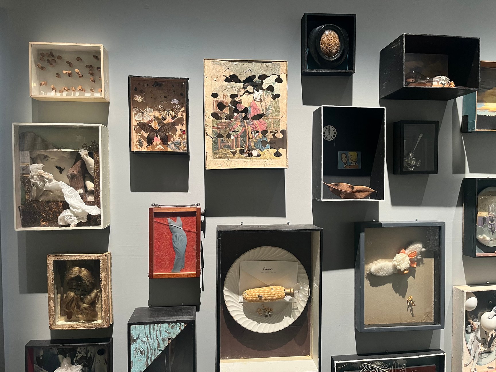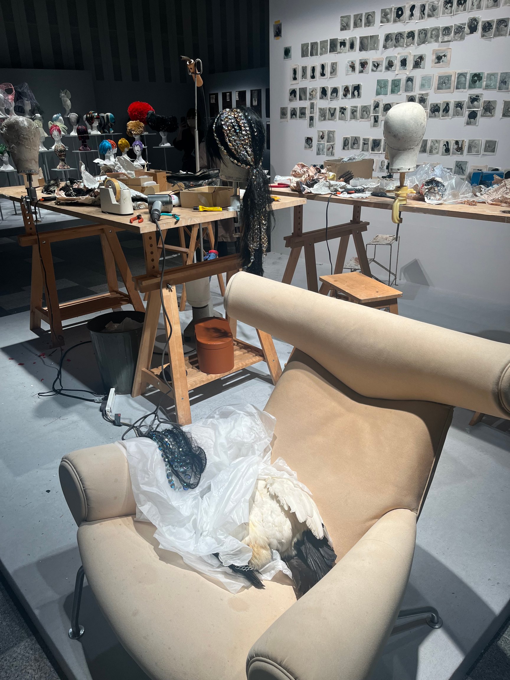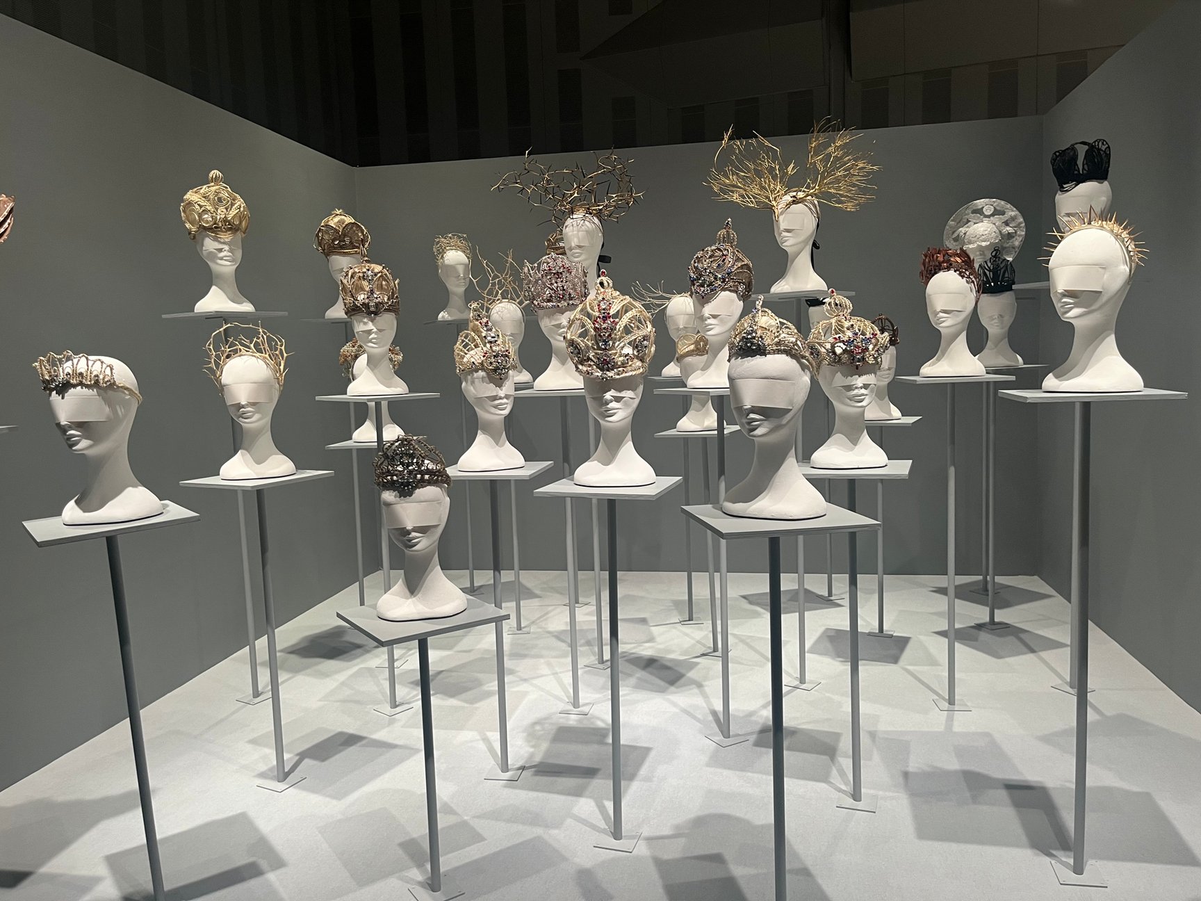 展示は、国内外のコレクションで使用されたヘッドピースと、加茂のパーソナルワークである箱型のアートピース、アトリエを再現したスペース、物販の4つのカテゴリーに分類。