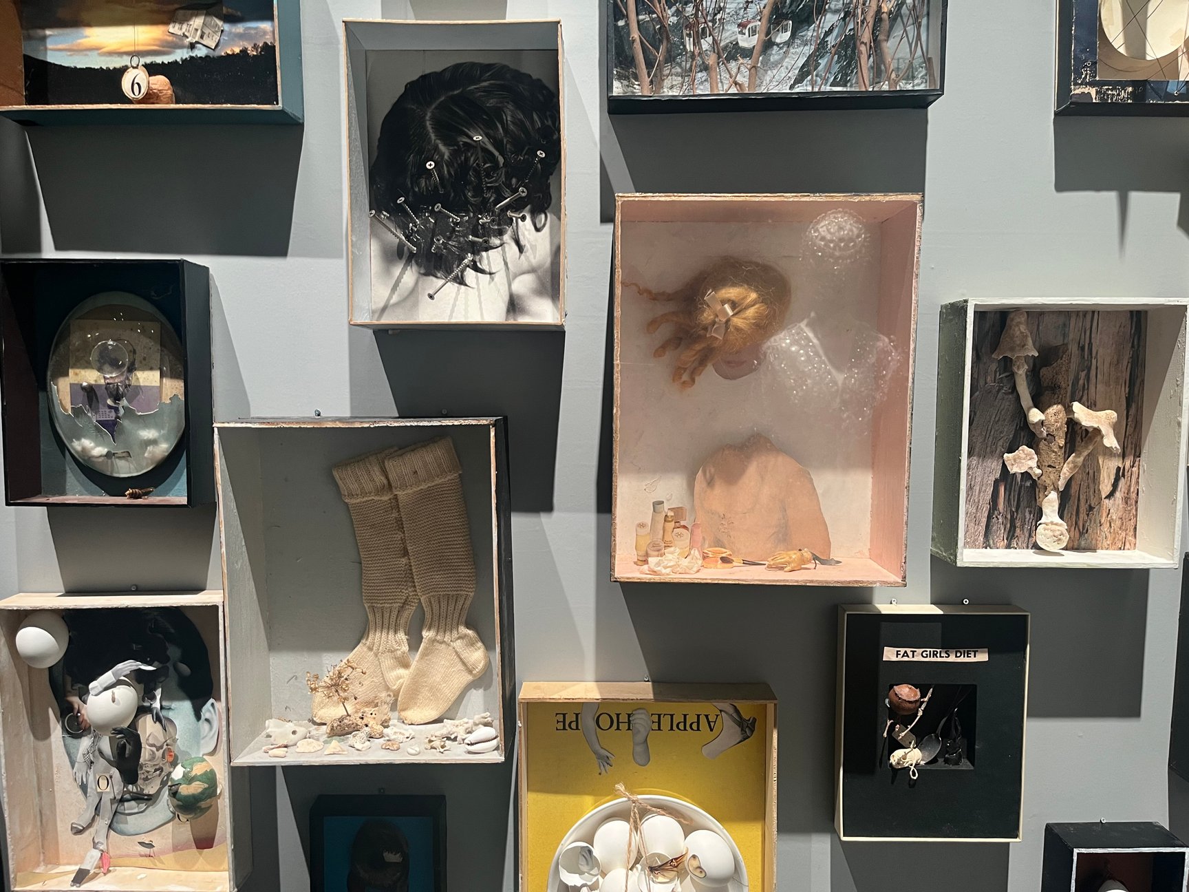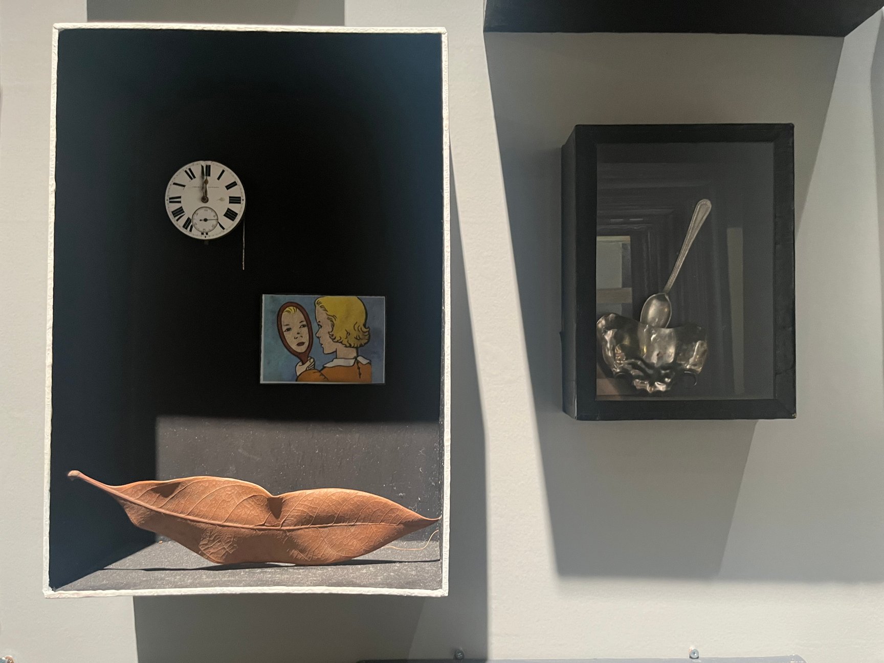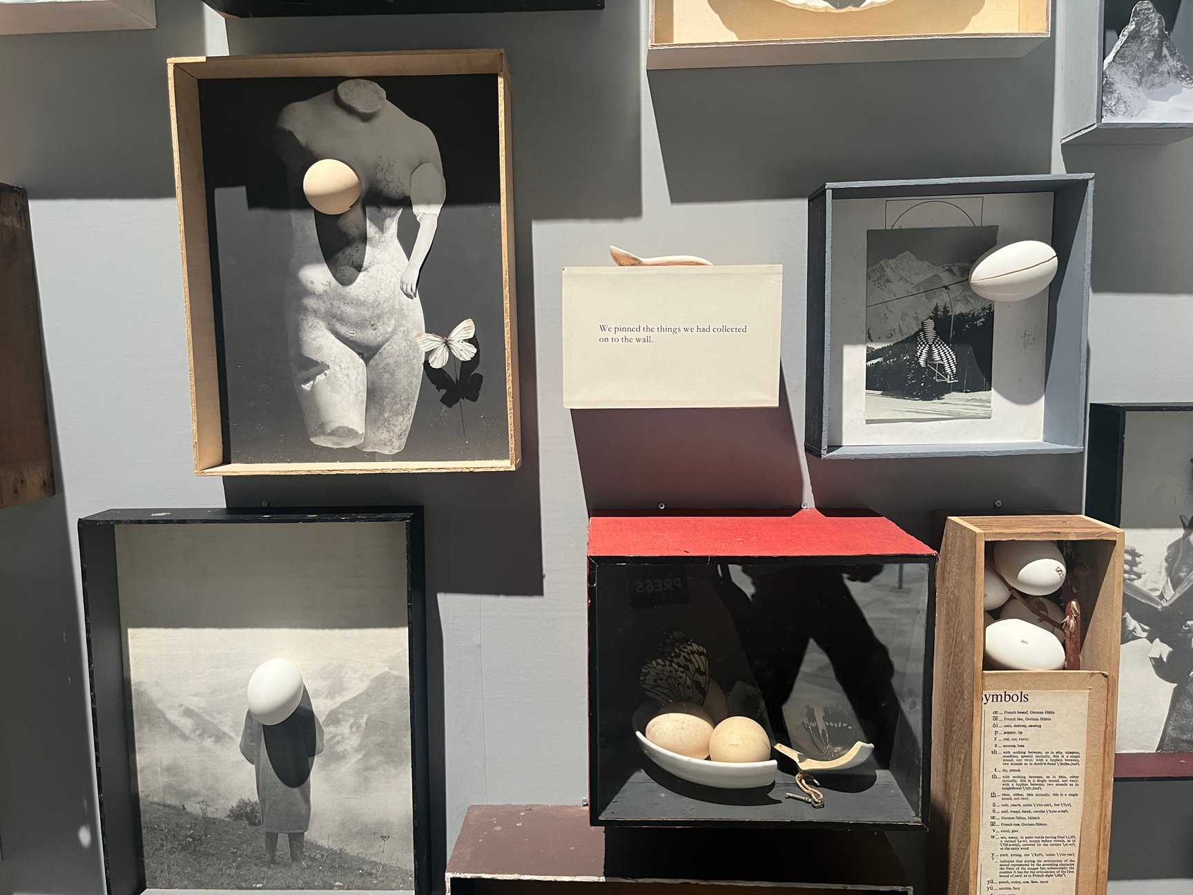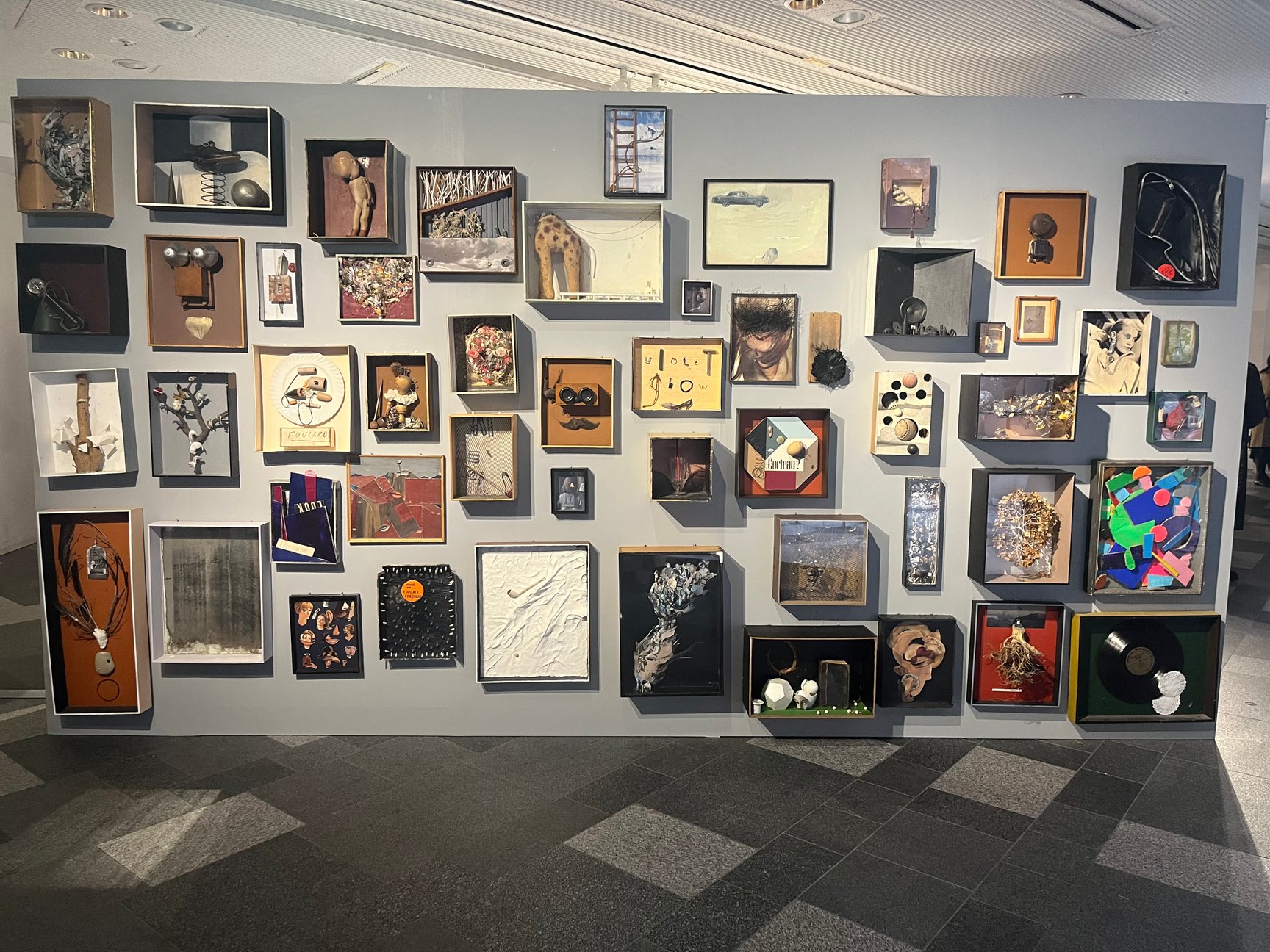 プライベートワークである箱型のアートピースの数々は、加茂が娘とともに制作していたもの。加茂自身が採集した虫や卵などによる222点の作品を展示している。