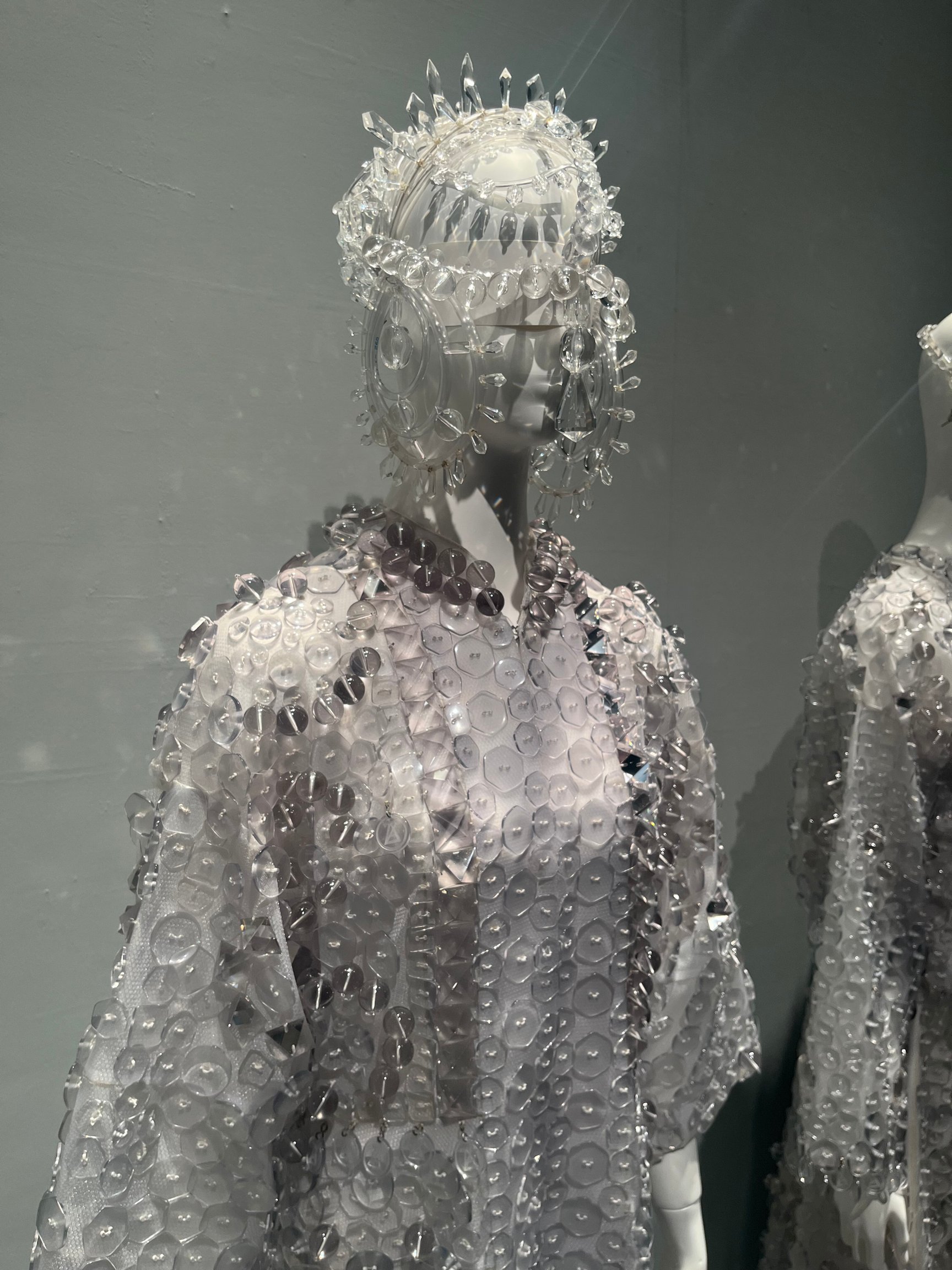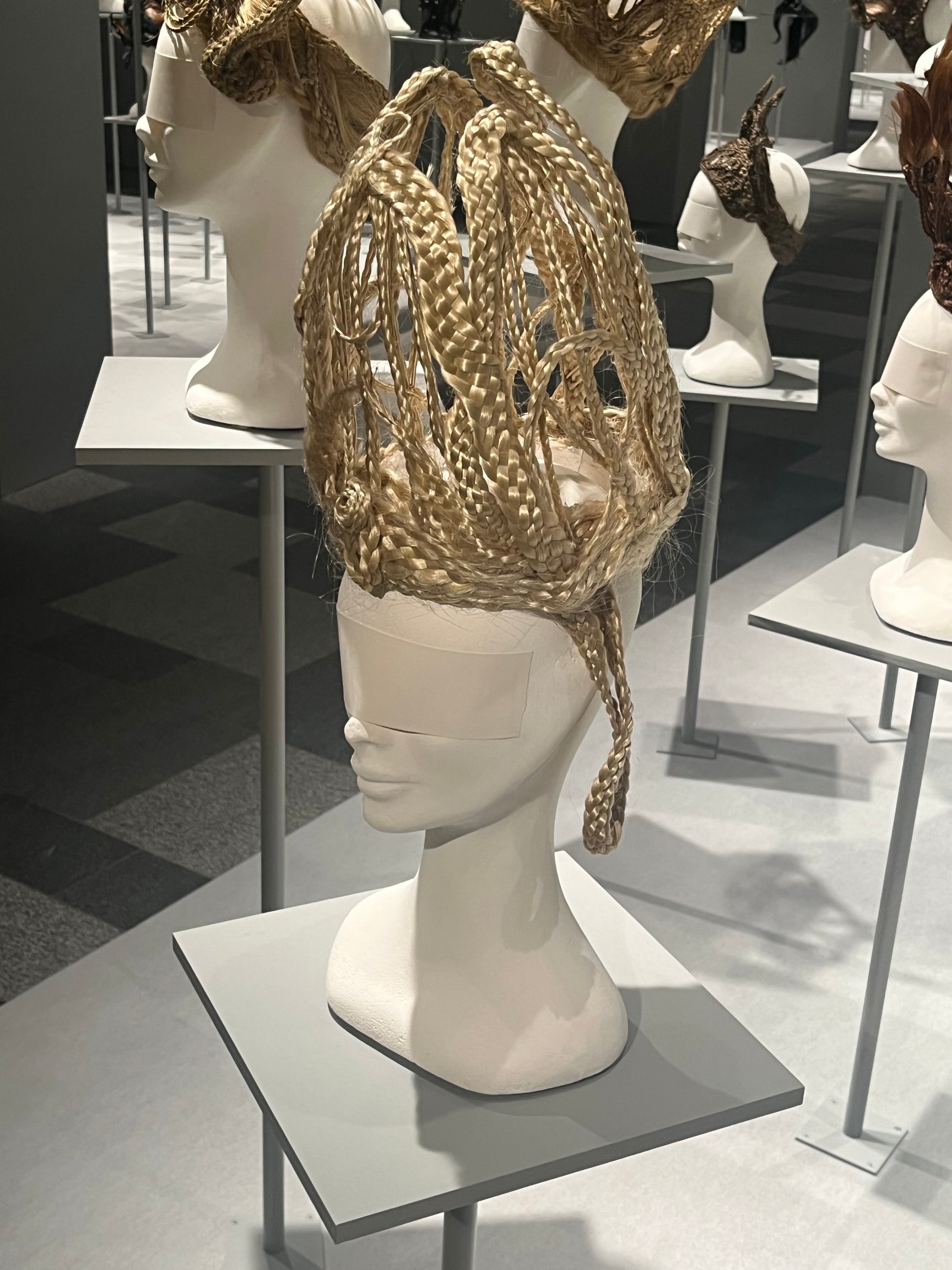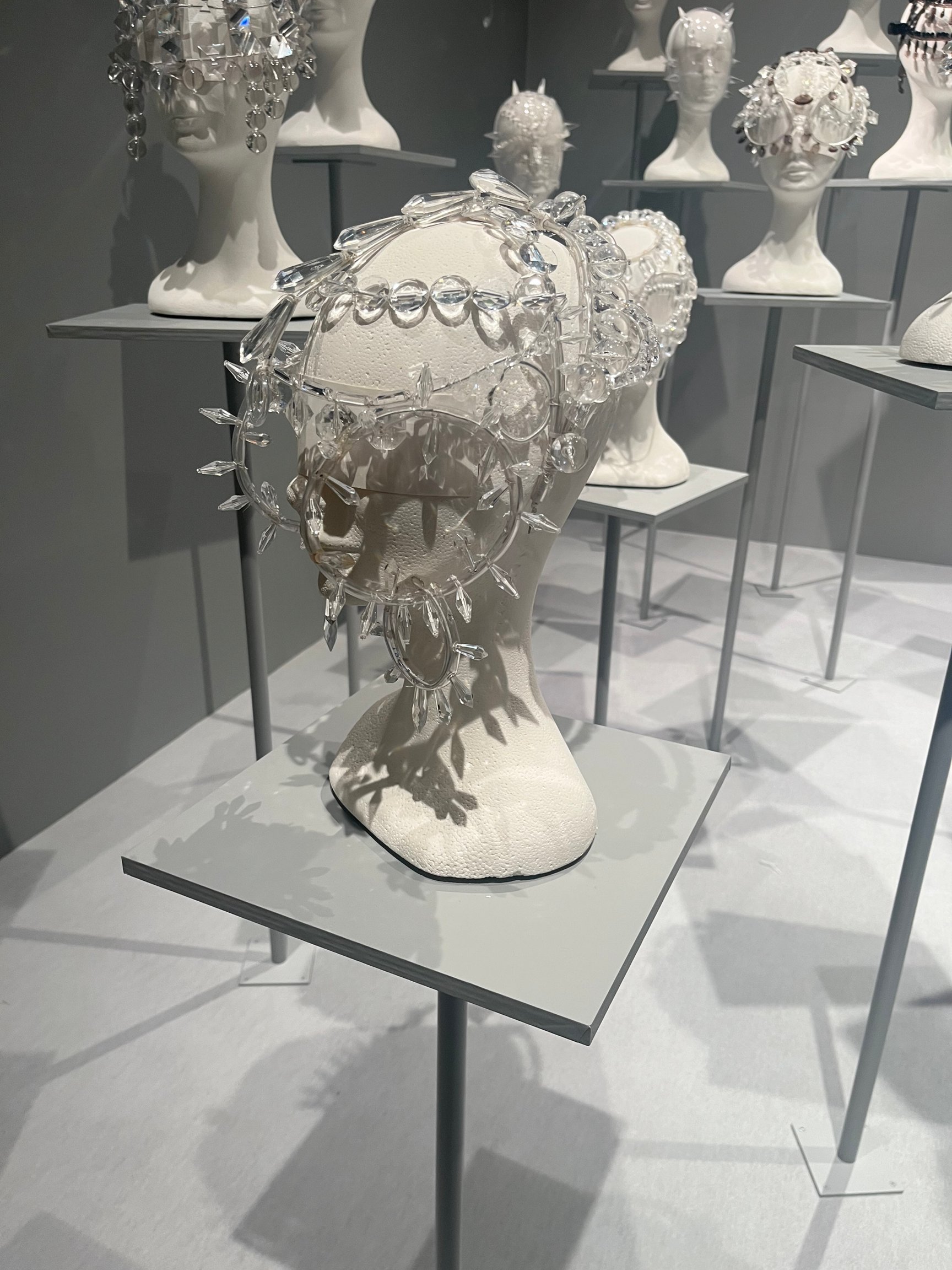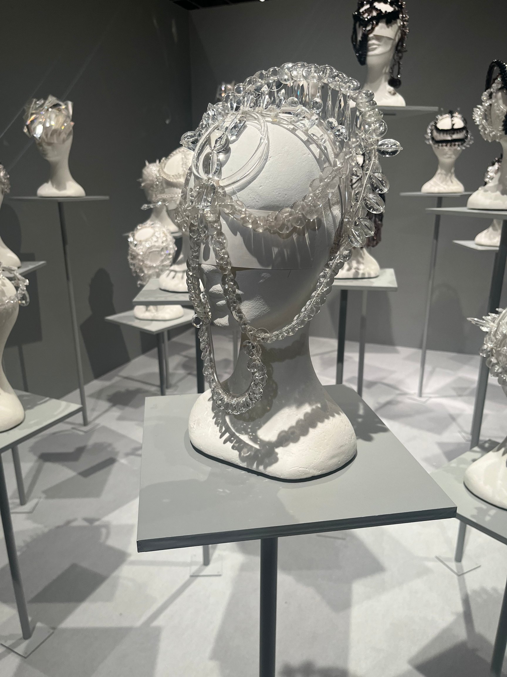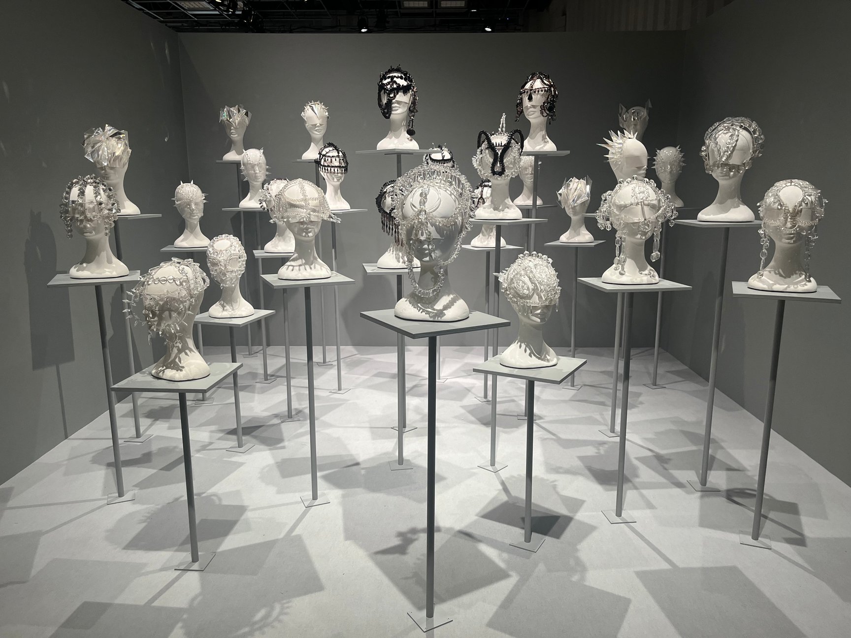ヘッドピースは、「アンダーカバー(UNDERCOVER)」や「ジュンヤ ワタナベ(JUNYA WATANABE)」「キコ コスタディノフ(KIKO KOSTADINOV)」といったさまざまなブランドのショーで使用された262点を実際のショーの映像とともに展示。また、細田守監督による映画「竜とそばかすの姫」に登場した「アンリアレイジ(ANREALAGE)」のアクリルのヘッドピースと衣装も公開している。