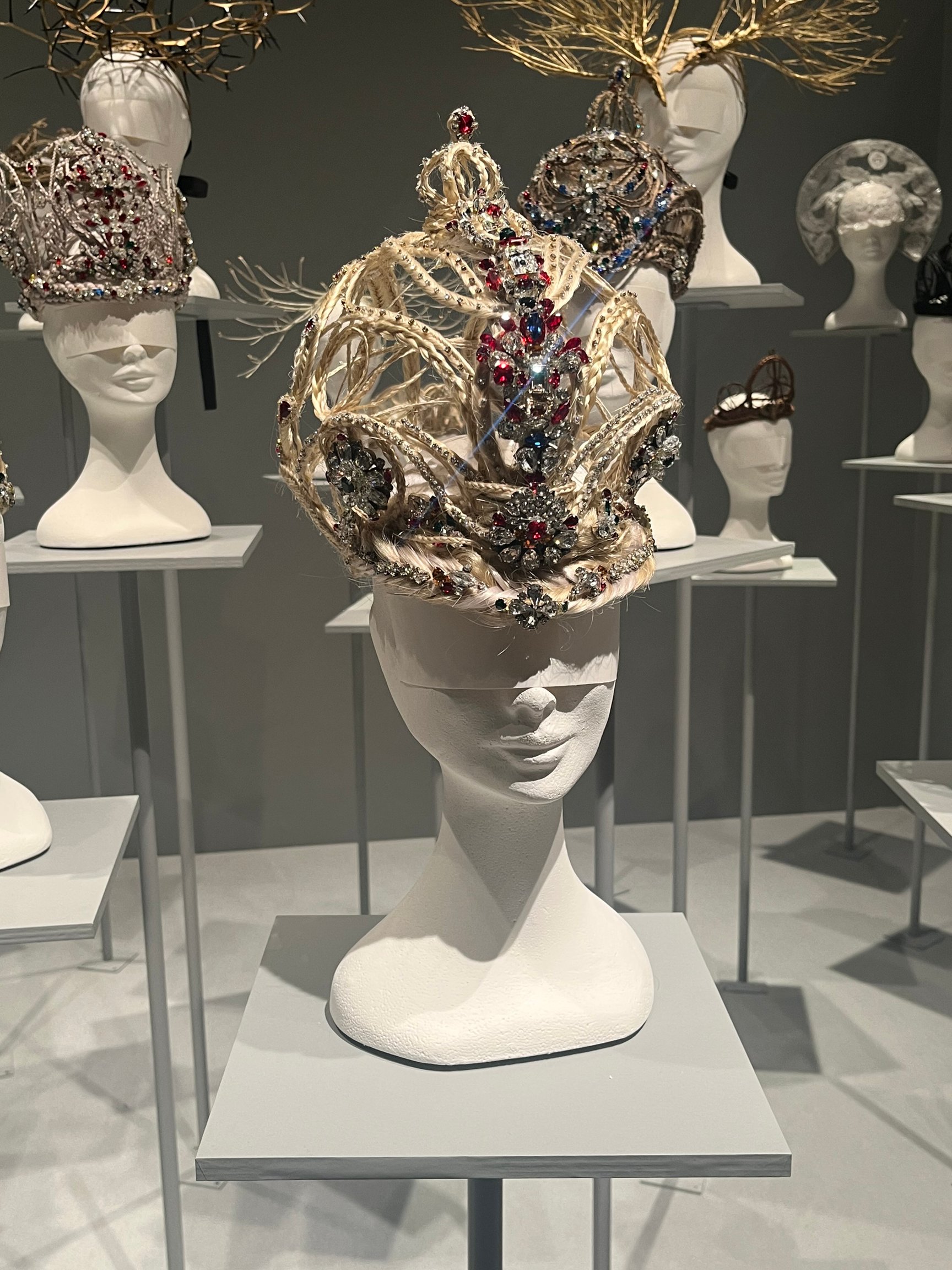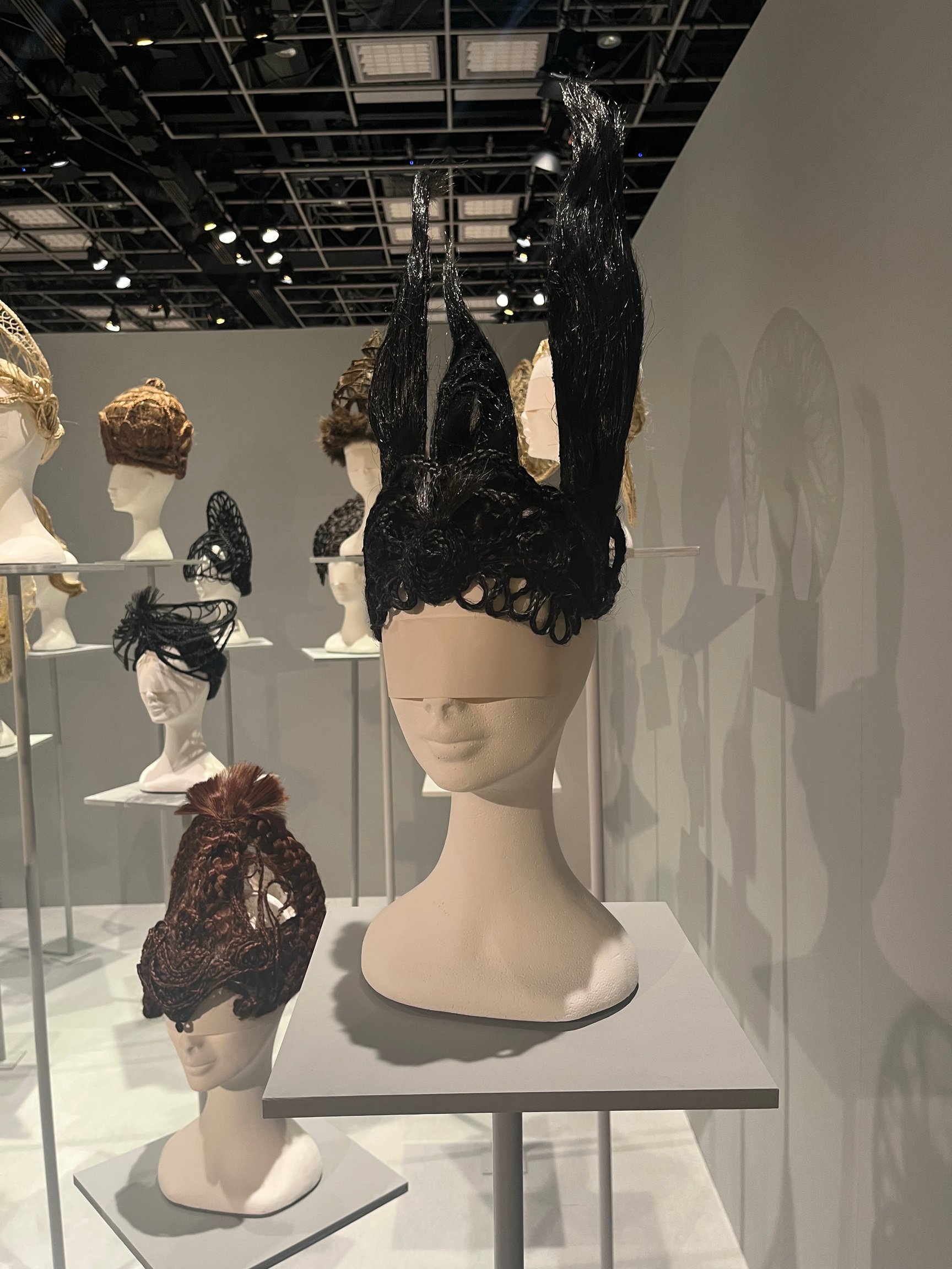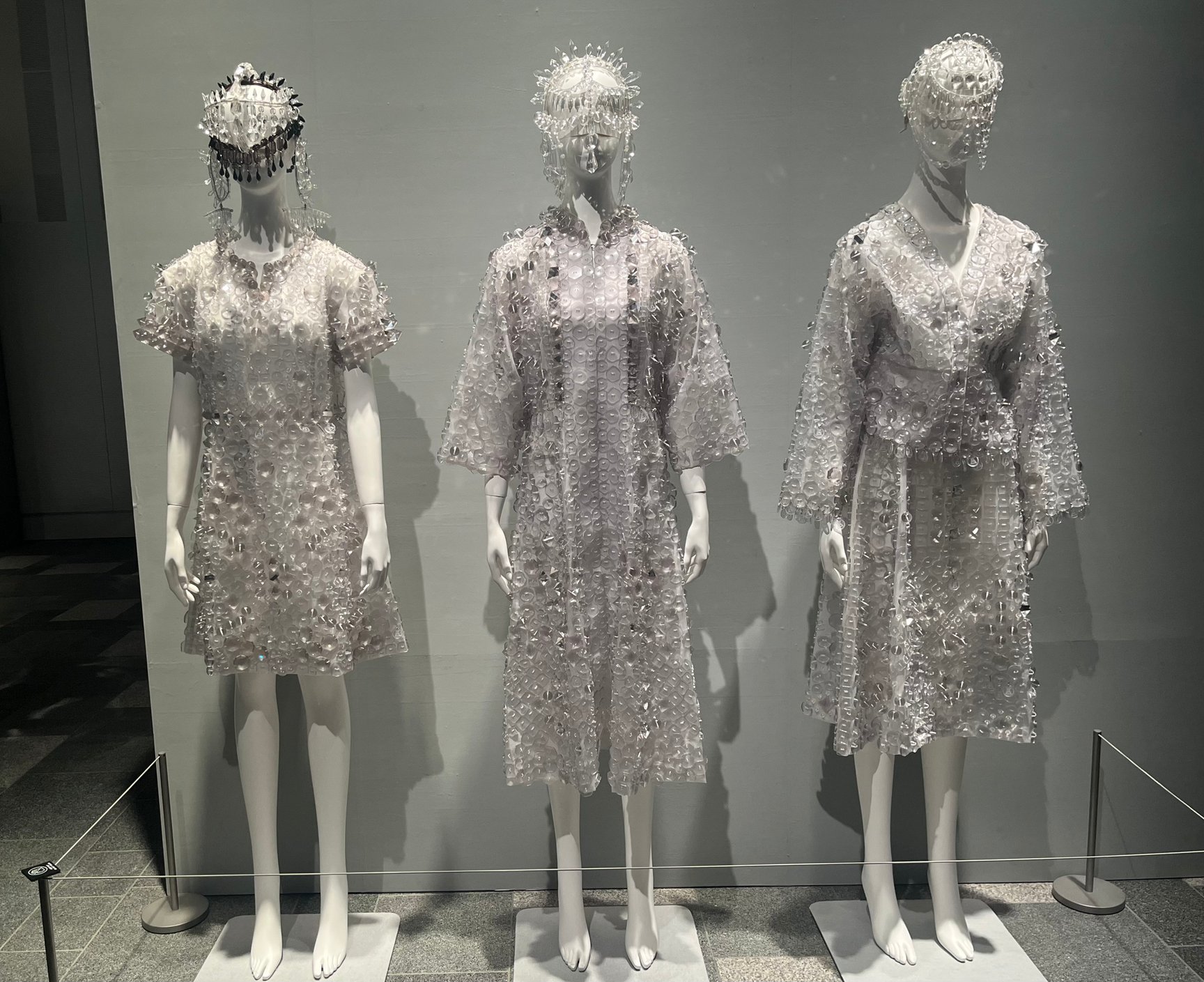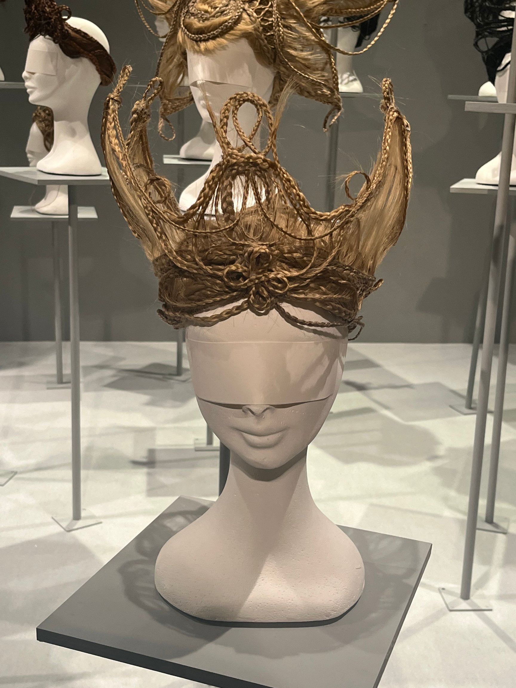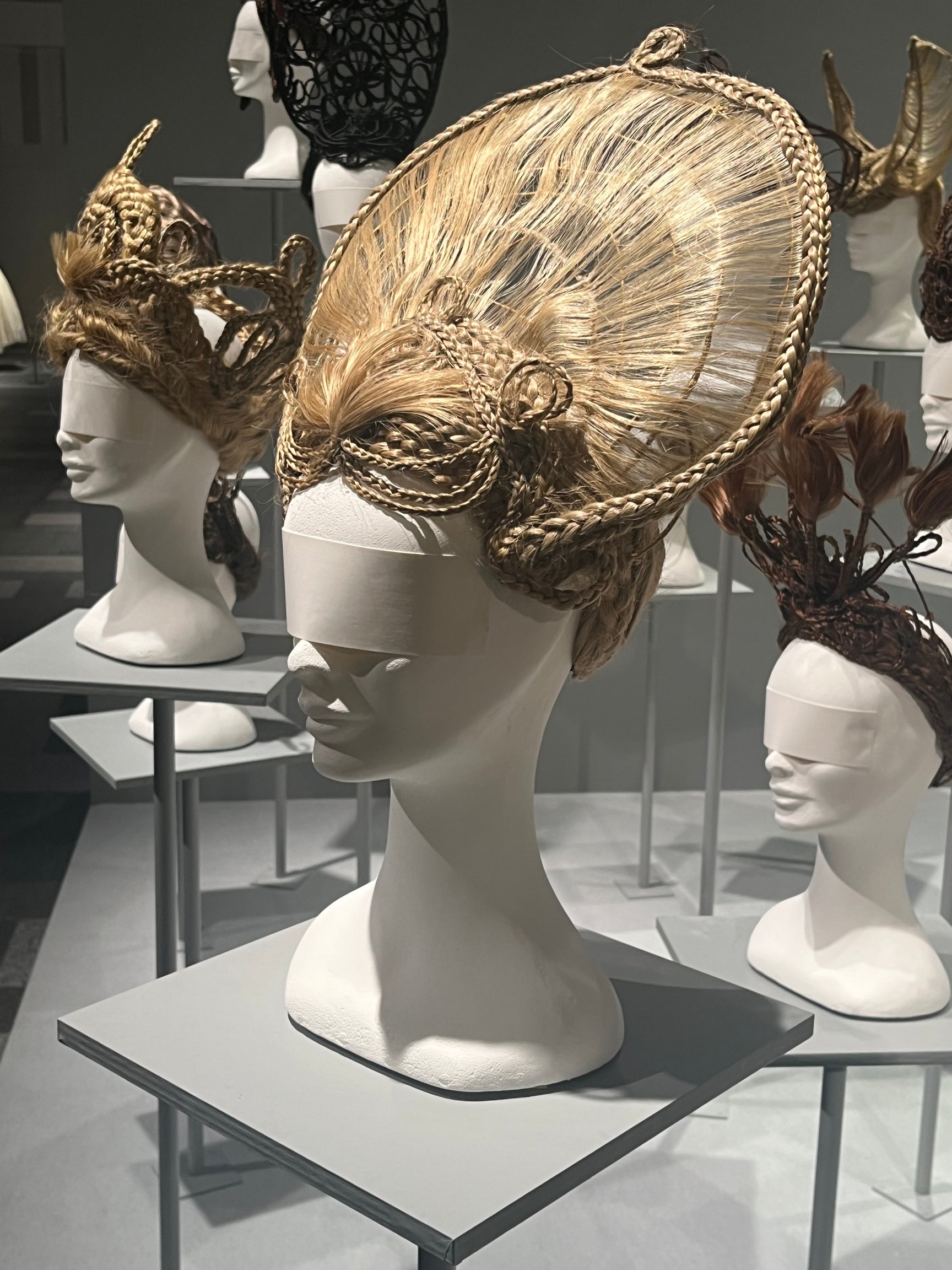 ヘッドピースは、「アンダーカバー(UNDERCOVER)」や「ジュンヤ ワタナベ(JUNYA WATANABE)」「キコ コスタディノフ(KIKO KOSTADINOV)」といったさまざまなブランドのショーで使用された262点を実際のショーの映像とともに展示。また、細田守監督による映画「竜とそばかすの姫」に登場した「アンリアレイジ(ANREALAGE)」のアクリルのヘッドピースと衣装も公開している。