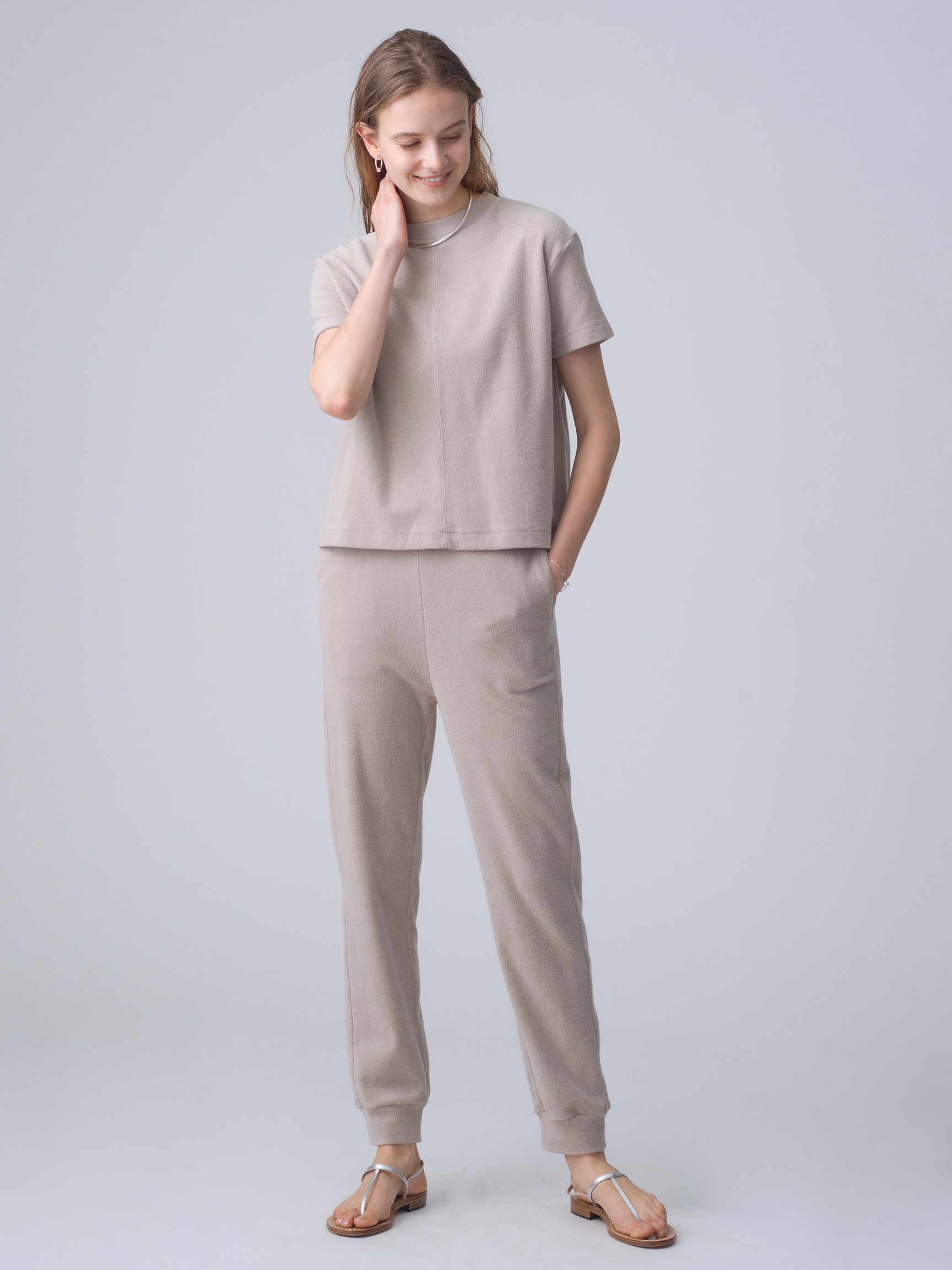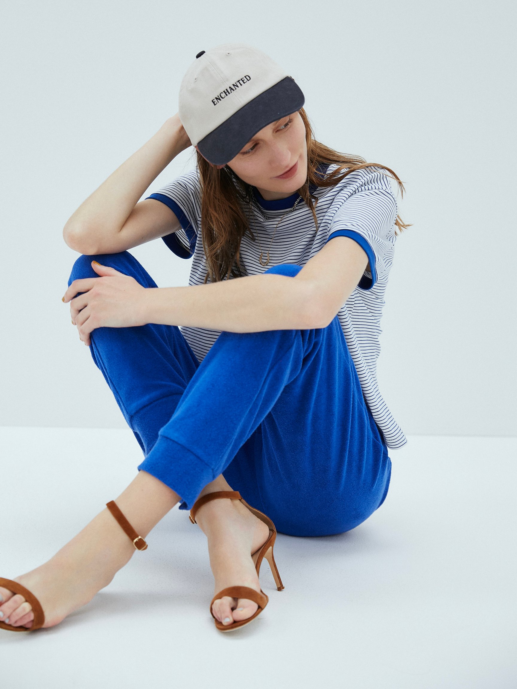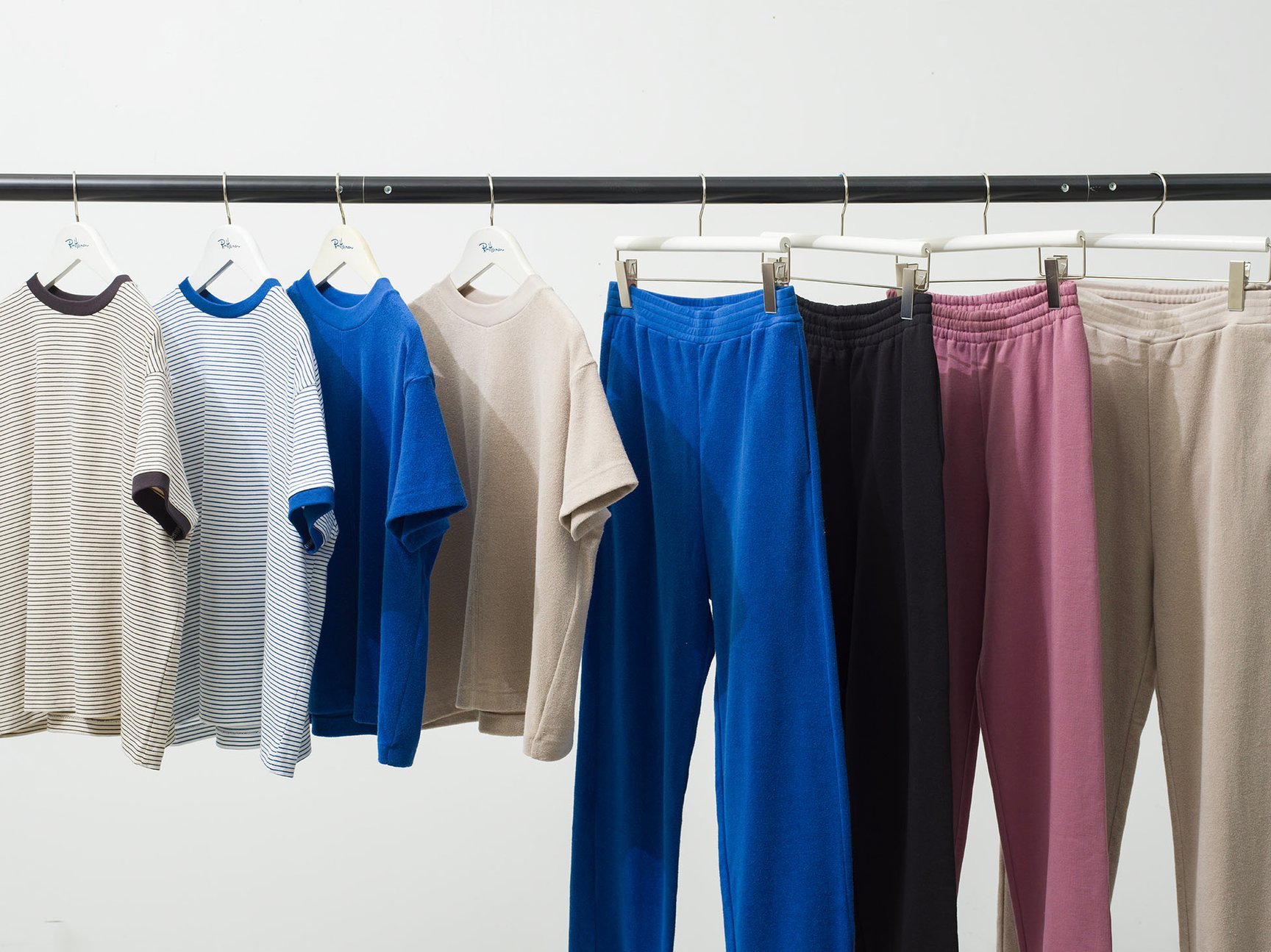 アイテム第1弾では、アフリカのサンビア中央州に住む契約農家100人が育て、2022年春に収穫された綿花を使用。トレーサビリティに配慮した上で日本に輸出し、ロンハーマンの工場で紡績した。天竺のスウェットプルオーバー(2万3100円)、スウェットパンツ(2万5300円)、セットアップで着用できるパイル生地の半袖Tシャツ(1万4300円)とパンツ(2万3100円)、無地とボーダー柄のTシャツ2型(各1万4300円/いずれも税込)をラインナップする。