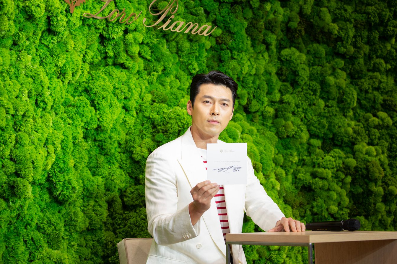 約5年ぶりに来日したというヒョンビンは、白いジャケットに身を包んで登場。司会とのトークセッションでは、ヒョンビン?エディションについて「安らぎやヒーリング効果など、日々の中で色々なものを与えてくれる自然に対して、自分には何ができるのかを考えて製作しました。自然への感謝の気持ちとして、韓国の四季をイメージしたカラーをロロ?ピアーナのロゴモチーフのブナの木を通して表現しました」とこだわりのポイントを語った。