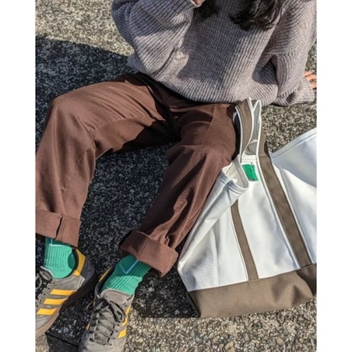靴下とバッグタグのグリーンをリンクさせているのが粋ですよね。