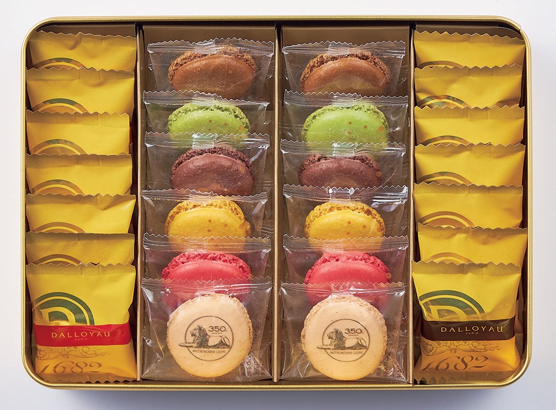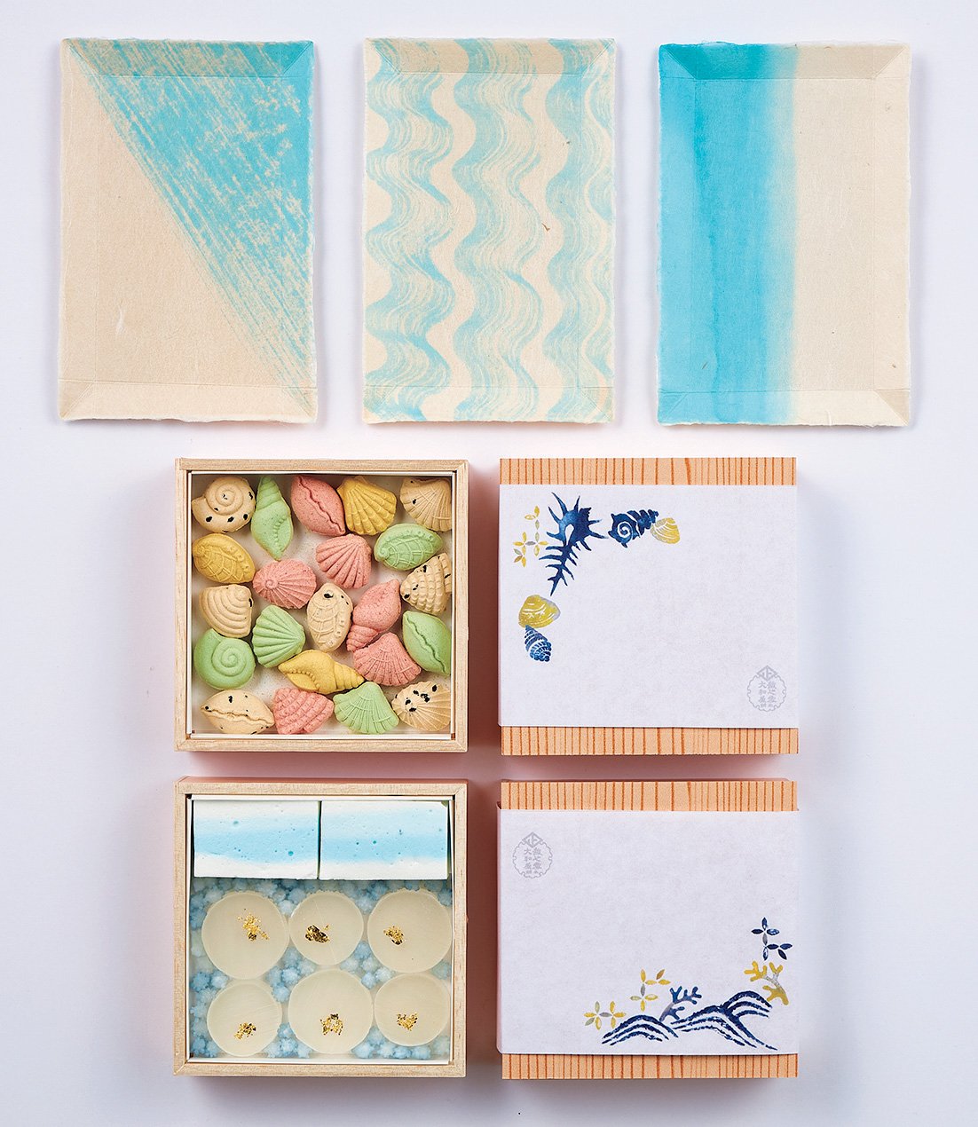 お中元用には、「森八」の上生菓子を細工できる「和菓子作り体験セット」(3240円)や、「風流堂」の12種のお菓子を自分で詰め合わせる「和菓子のおべんとう」(4320円)、「越乃雪本舗大和屋」の銘菓をならべて海の景色をつくることができる「海の音」(4995円)といった体験型の商品を提供。また、創業350周年記念缶に詰めた「ダロワイヨ(DALLOYAU)」の「マカロンラスク&ガトーアソート」(3780円)や「ゴディバ(GODIVA)」の「ドーム バームクーヘン」(4860円)、ライオン像をモチーフにした「兵左衛門」の「夫婦箸」(6600円)や「アリタポーセリンラボ(ARITA PORCELAIN LAB)」の「フリーカップセット」(5500円)、「七福タオル」の「フェイスタオルセット」(3300円)などの周年記念商品を豊富にラインナップする。このほか、「日本料理なだ万」の「3種の小丼セット」(5994円)や、「鈴波」の「手切りの技を用いた「魚介みりん粕漬詰合せ」(5400円)、「白謙蒲鉾店」の「笹かまぼこ 献夢」(5400円)といった名店の商品が揃う。