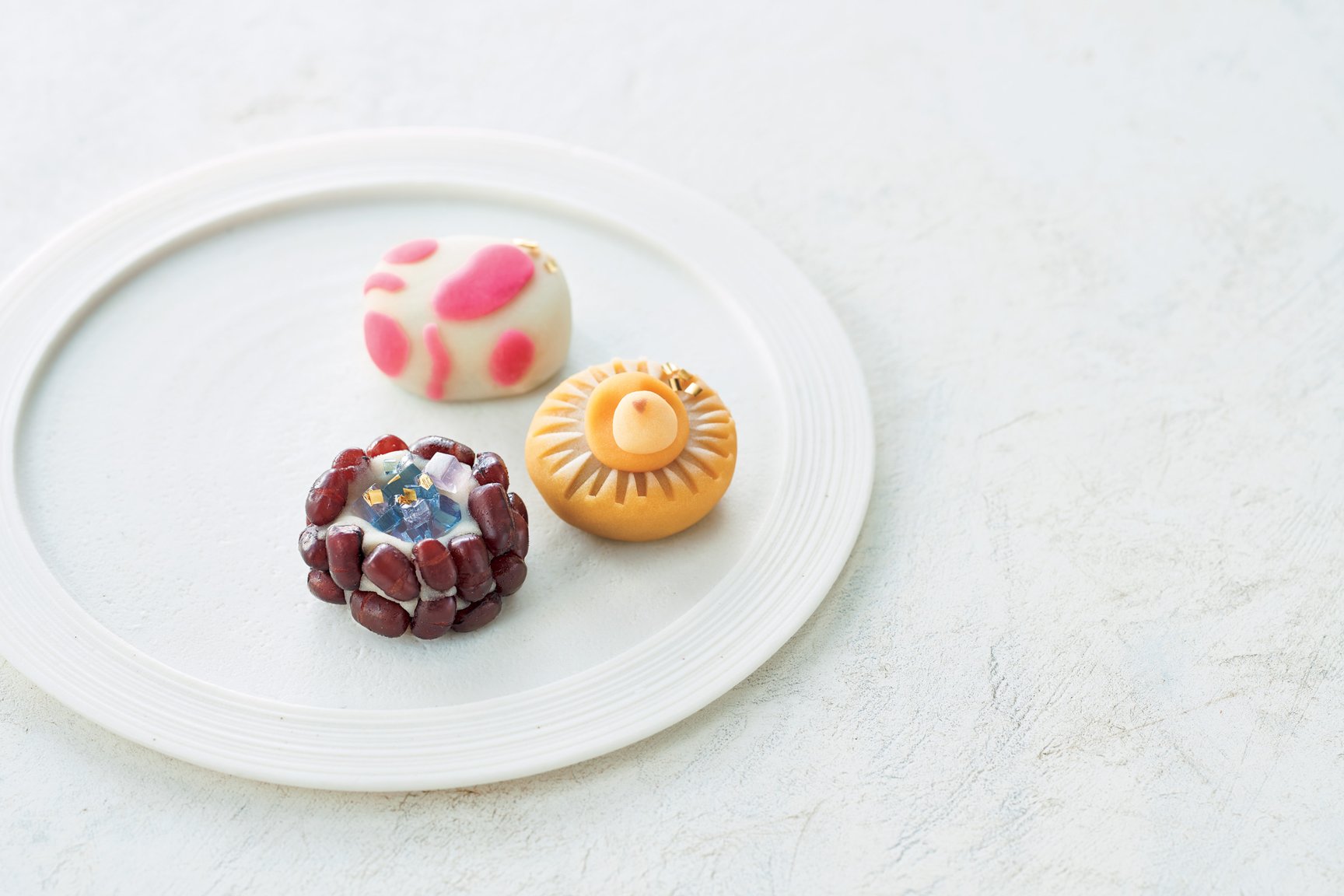 (左から)「ステンドグラス」、「市松に隠れライオン」、「石畳と番傘」