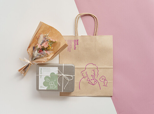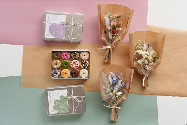 ドーナツファクトリー「koe donuts kyoto(コエ ドーナツ京都)」には、人気のクッキー缶&ドライフラワーブーケのギフトセットが予約販売限定で登場。