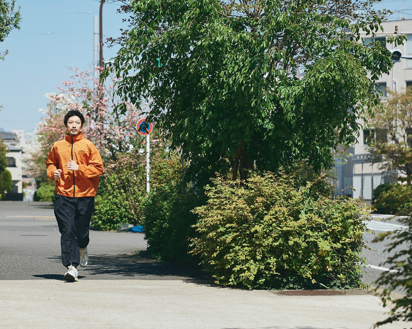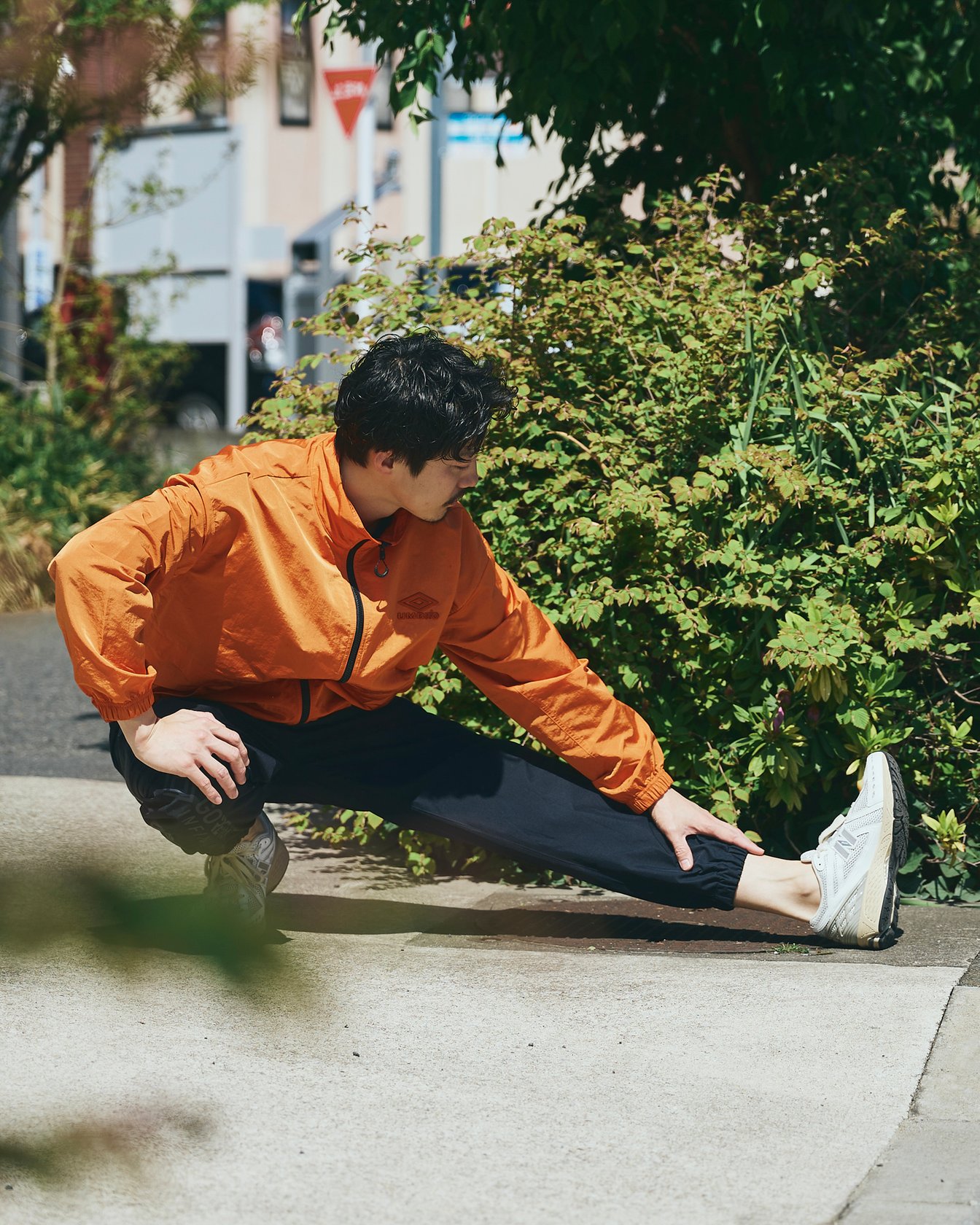 この日は「アンブロ」のブルゾンに「ニューバランス」のスニーカーという軽装で。