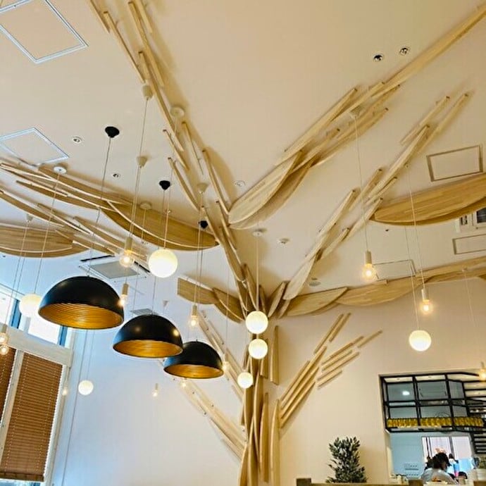 店内は白を基調に“樹のオブジェ”が天井まで広がるおしゃれな空間。