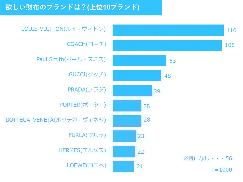 欲しい財布のブランドアンケート調査 男女別のランキング