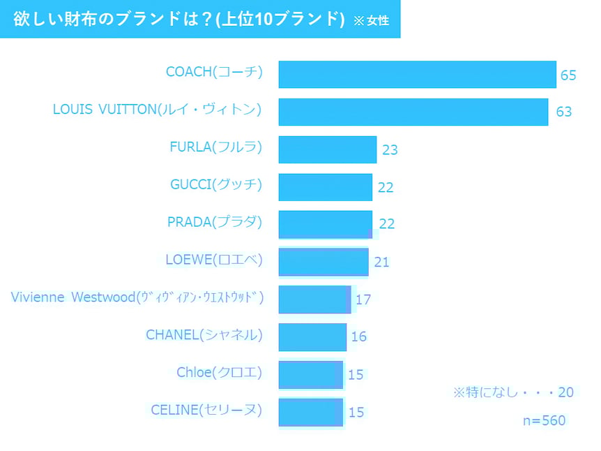 男女別ランキングで見ると、女性の財布のブランド人気ランキング1位は「コーチ(COACH)」、2位は「ルイ?ヴィトン」、3位は「フルラ(FURLA)」という結果になった。