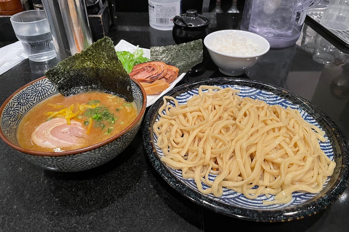 食べたもの:特製濃厚地鶏魚介つけ麺(1,150円)+ライス小(50円)