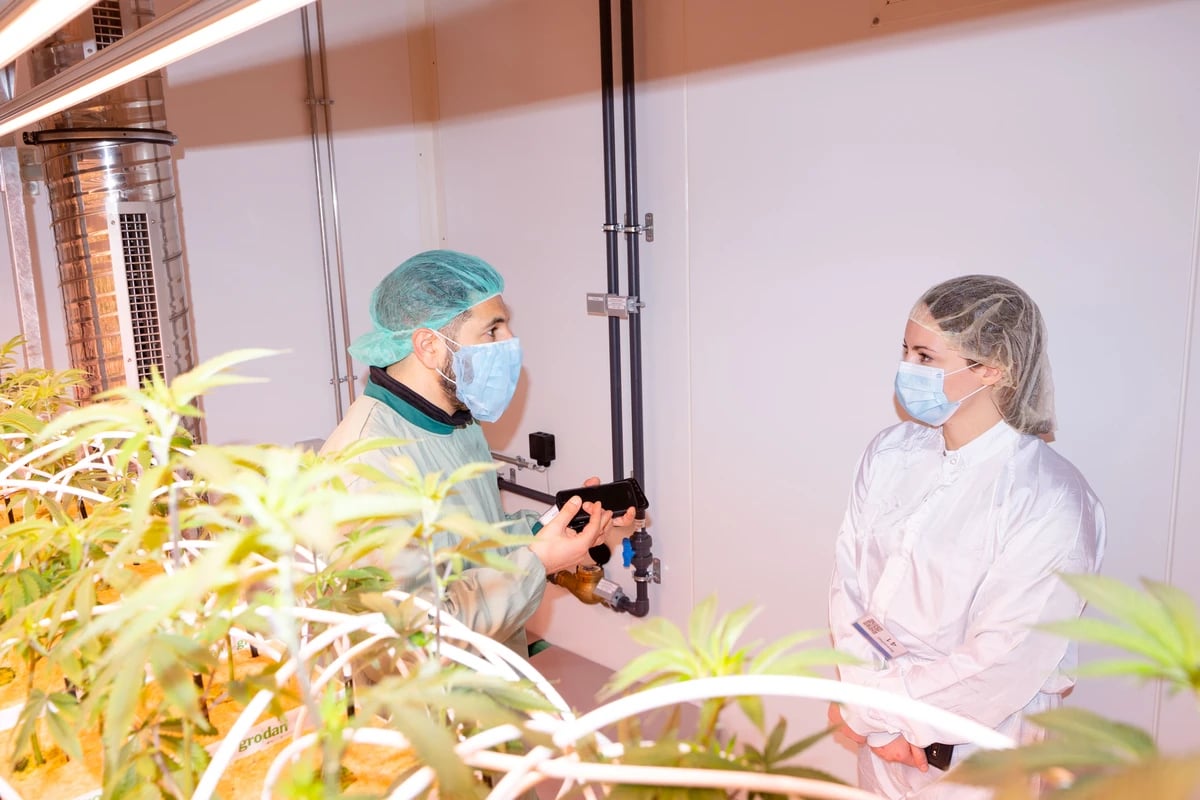 「大丈夫ですよ、僕と一緒ですから」とDemecan(デメカン)広報担当者のムハマド?アブドゥ?エル?カディル(Muhammad Abd El Qadir)は、私と並んで警備員の横を通り過ぎた。彼は10万平方メートルの工場の内部を案内してくれた。ここでは毎年1トンの蕾が収穫されるが、それでもドイツの医療用大麻の需要を賄うことはできない。連邦医薬品医療機器研究所(Federal Institute for Drugs and Medical Devices)によれば、毎年20トン以上の医療用大麻がこの国に輸入されているという。